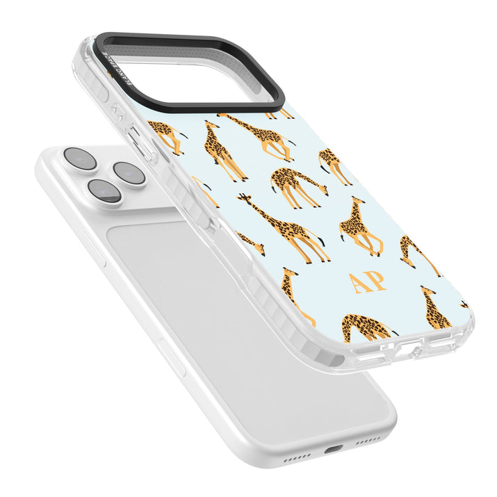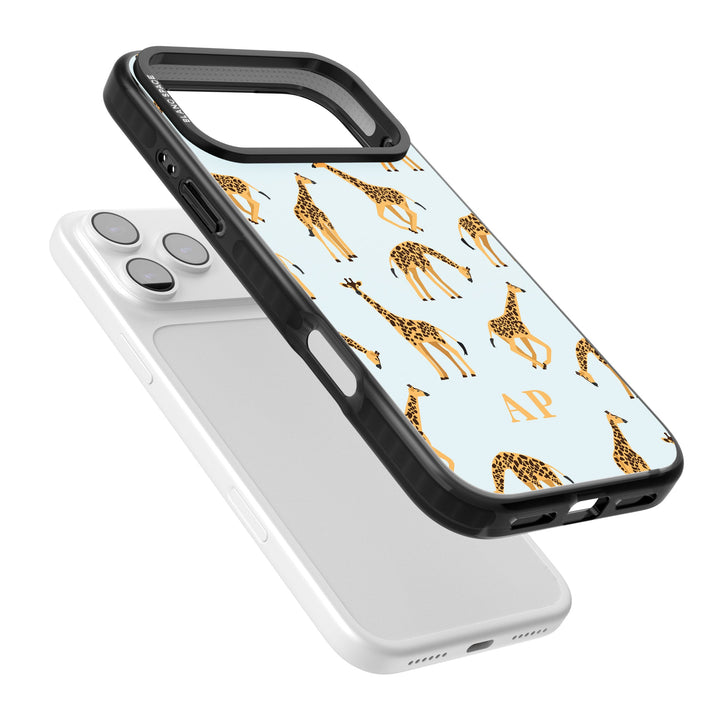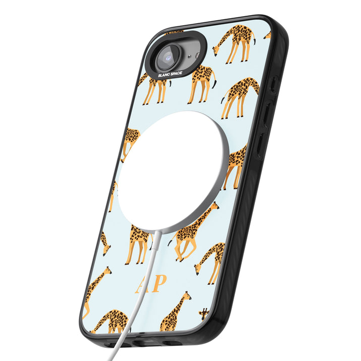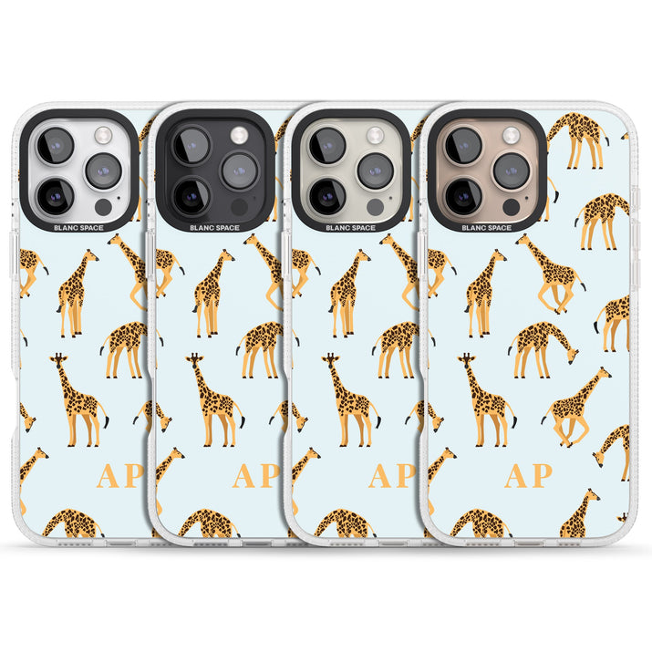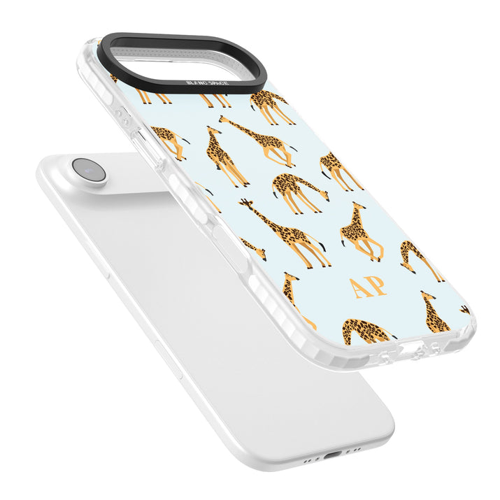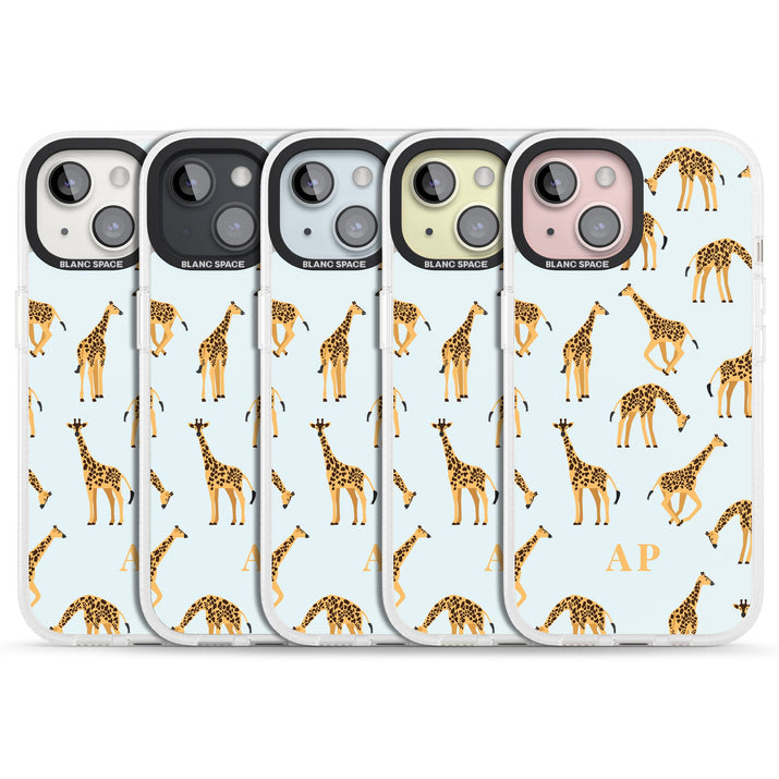 Personalisiertes Safari-Giraffenmuster auf Blau