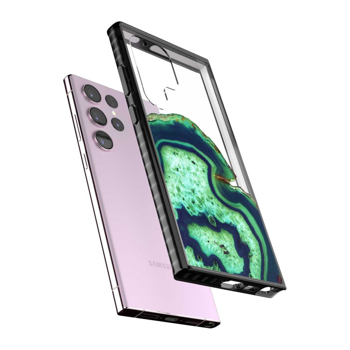 Cette coque de téléphone est conçue pour s'adapter aux modèles iPhone et Samsung, assurant ainsi une large compatibilité pour la plupart des utilisateurs.