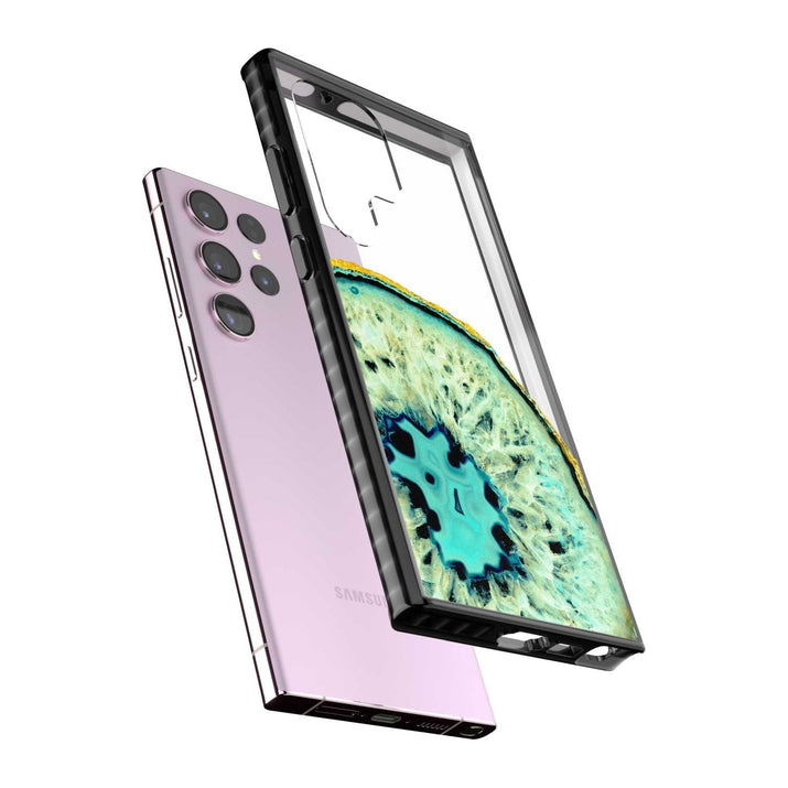 Cette coque de téléphone est conçue pour s'adapter aux modèles iPhone et Samsung, assurant ainsi une large compatibilité pour la plupart des utilisateurs.