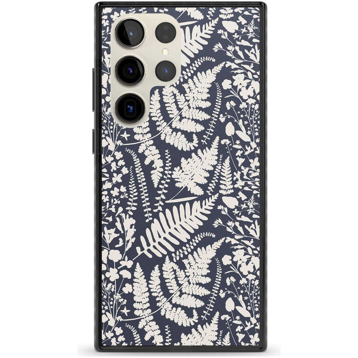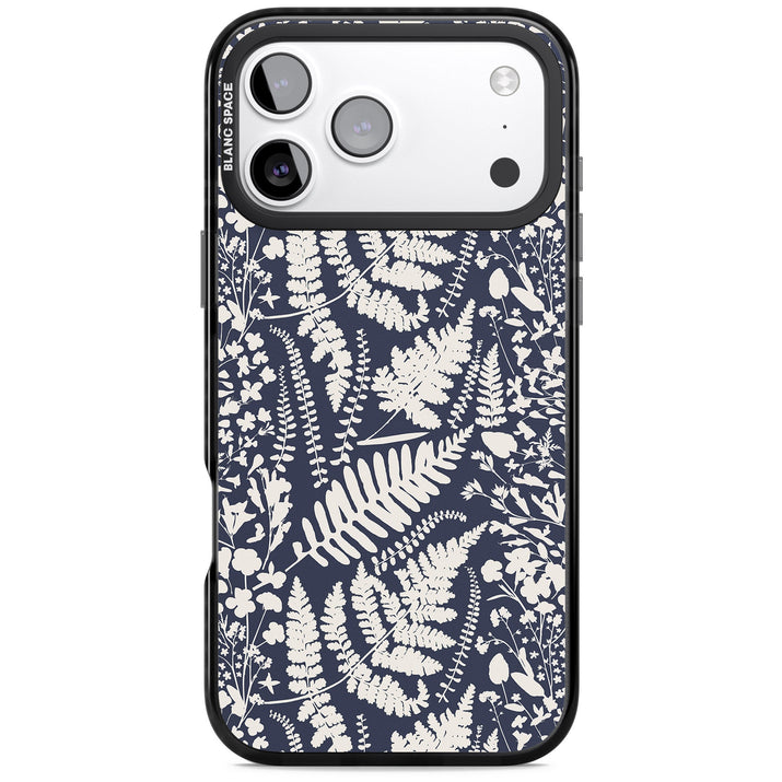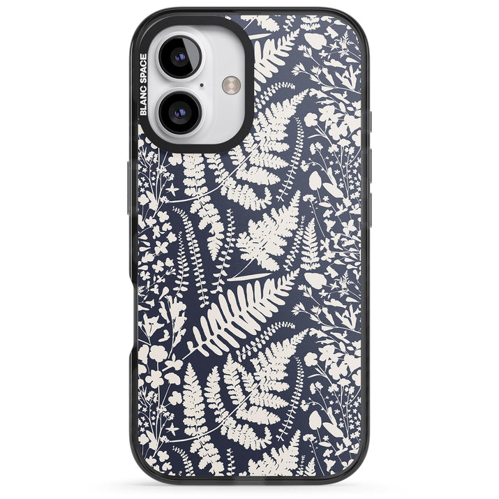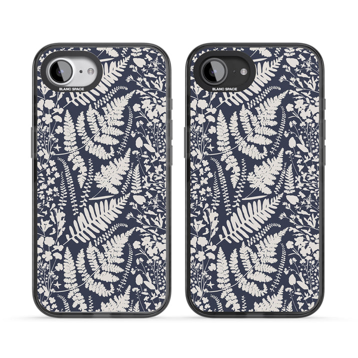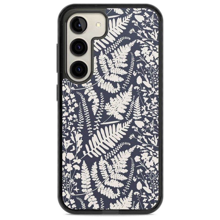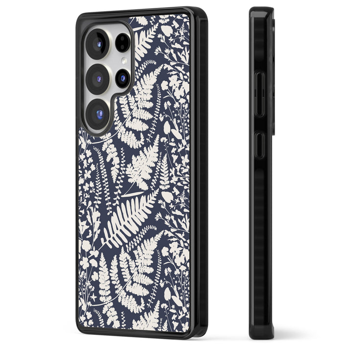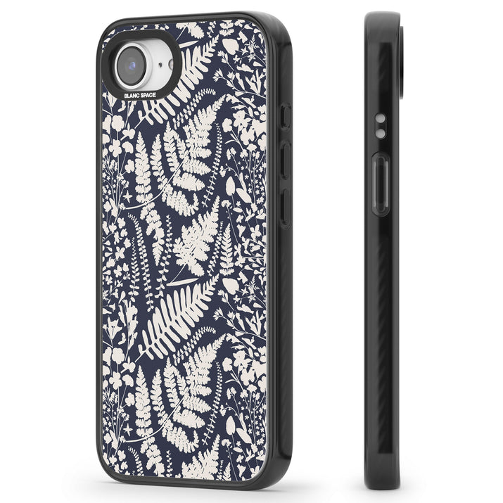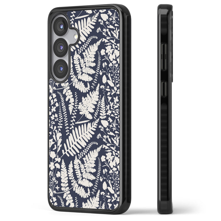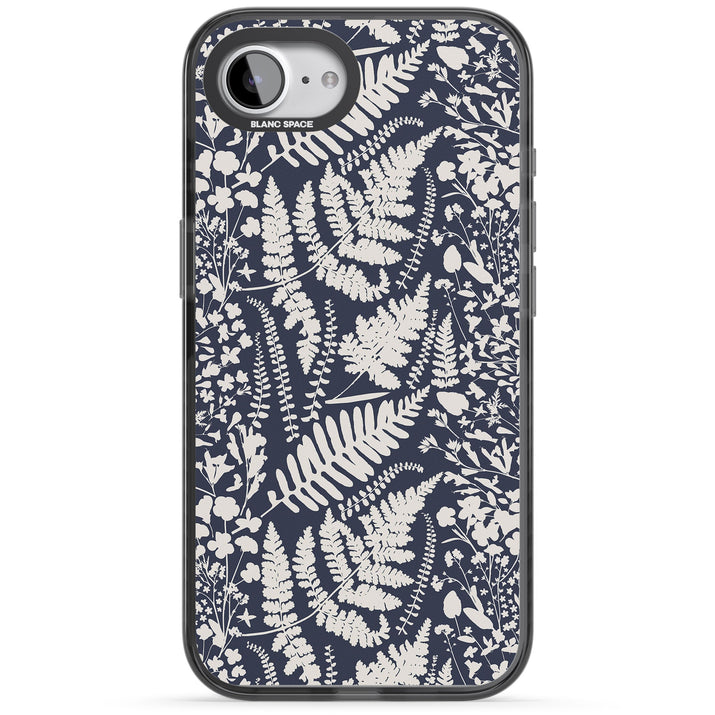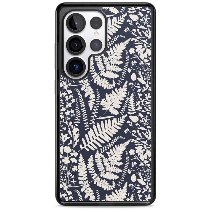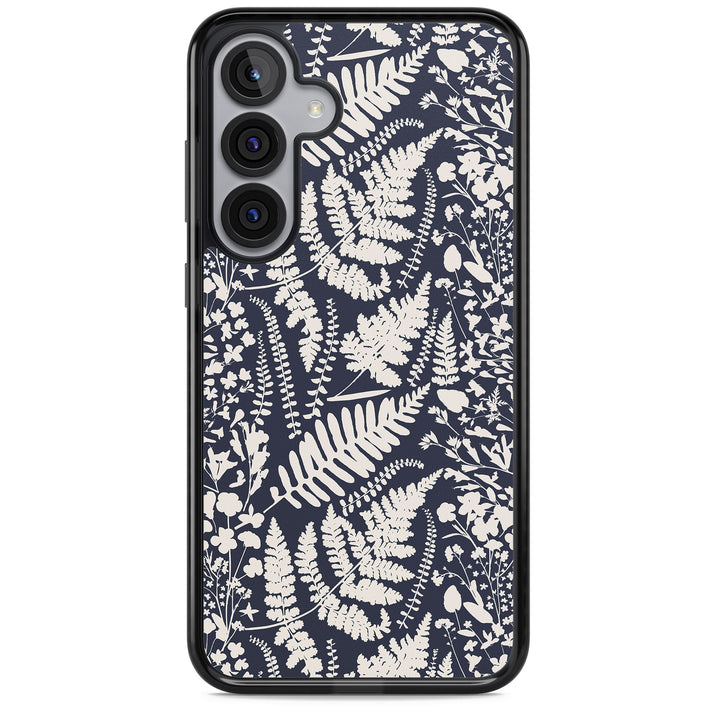 Fleurs sauvages et fougères sur fond bleu marine