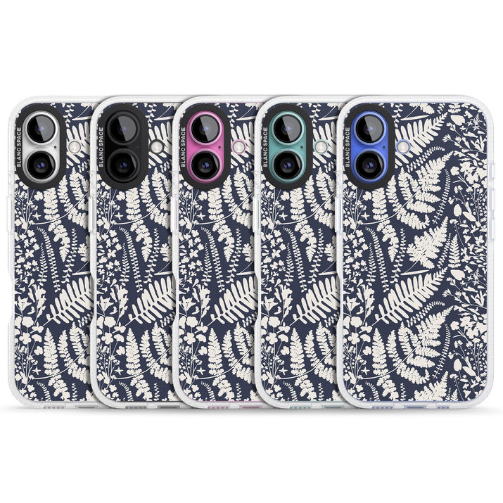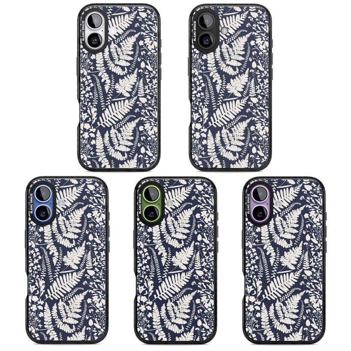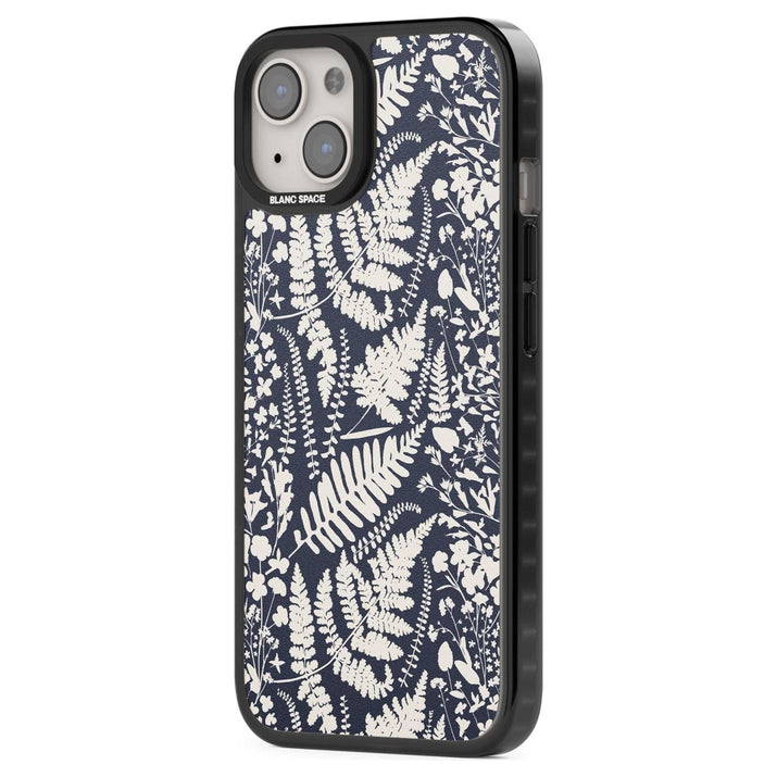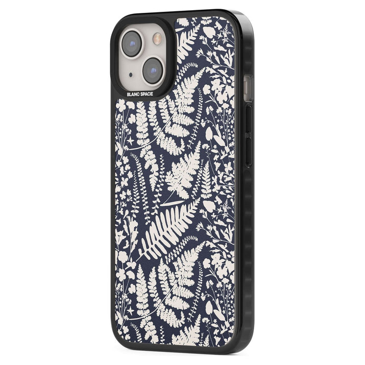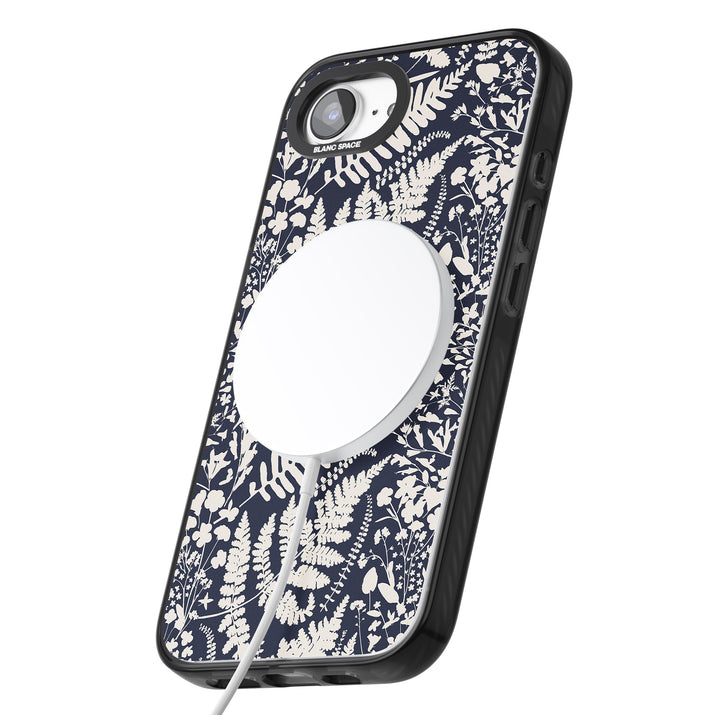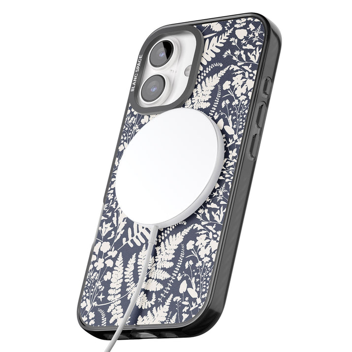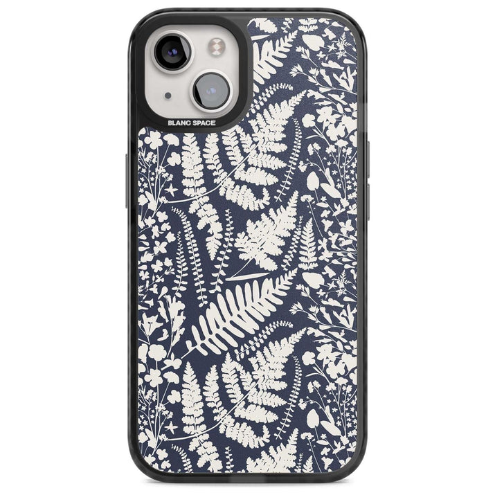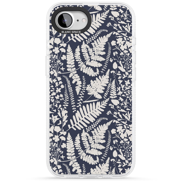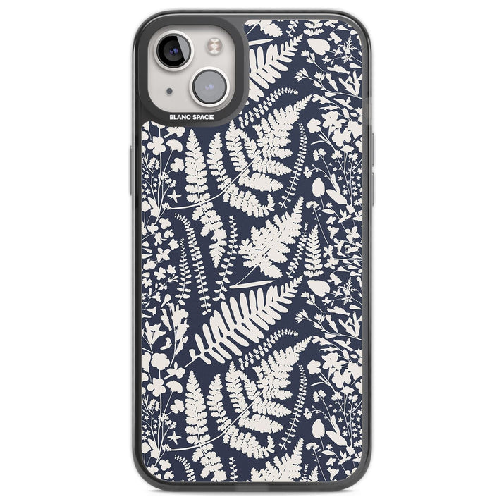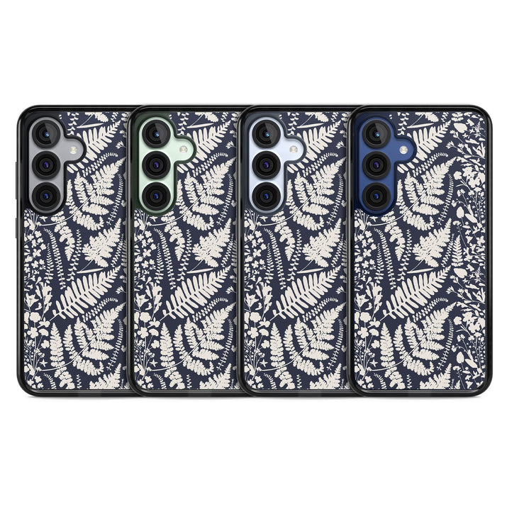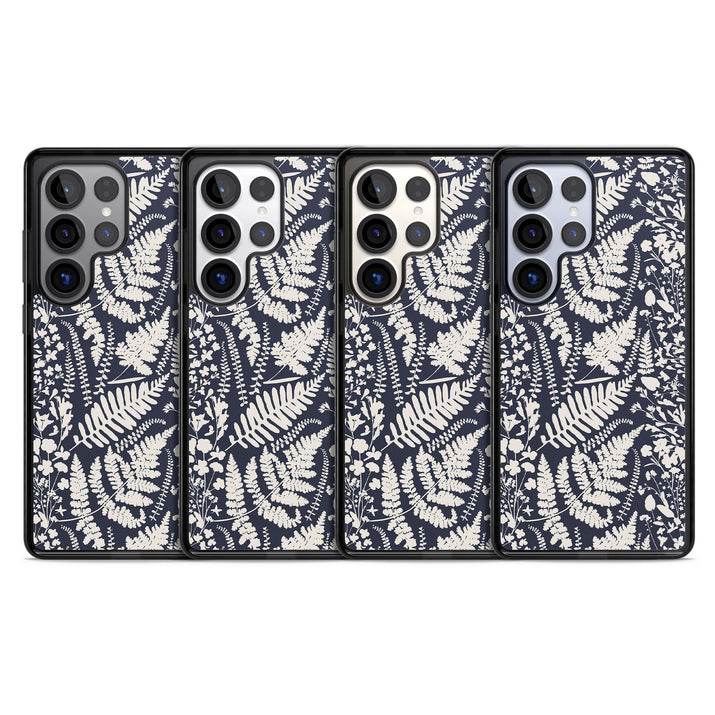 Fleurs sauvages et fougères sur fond bleu marine