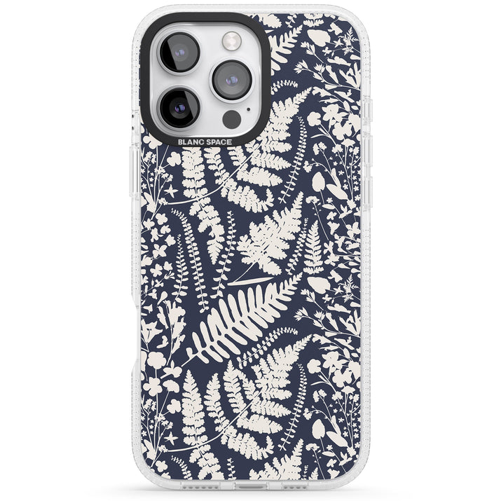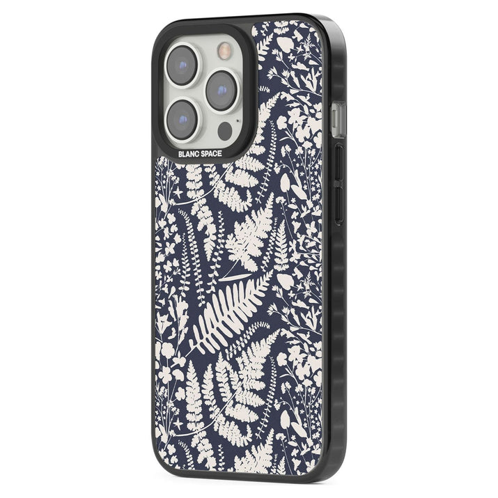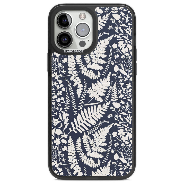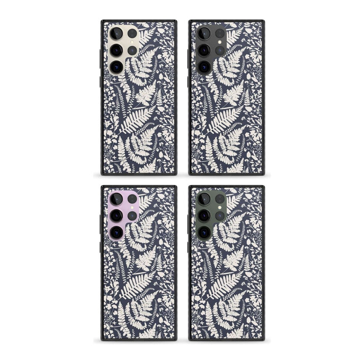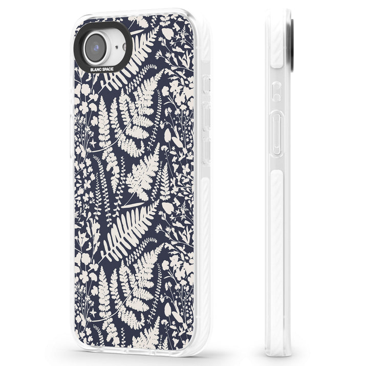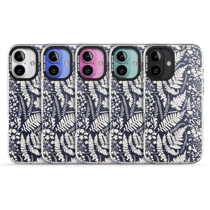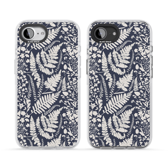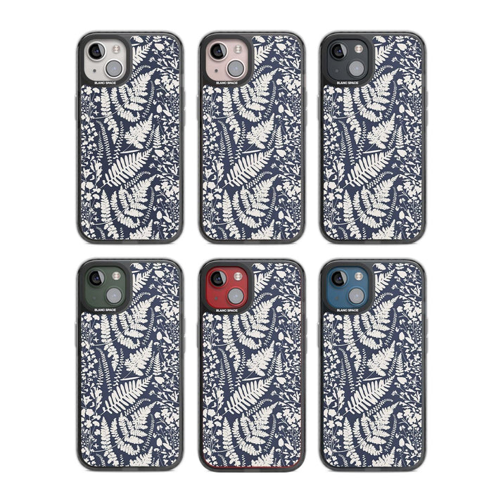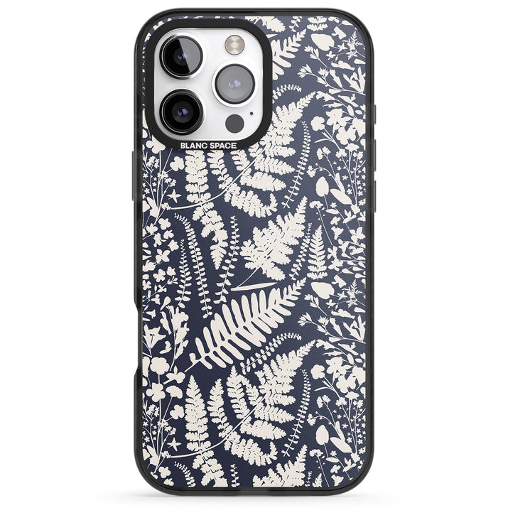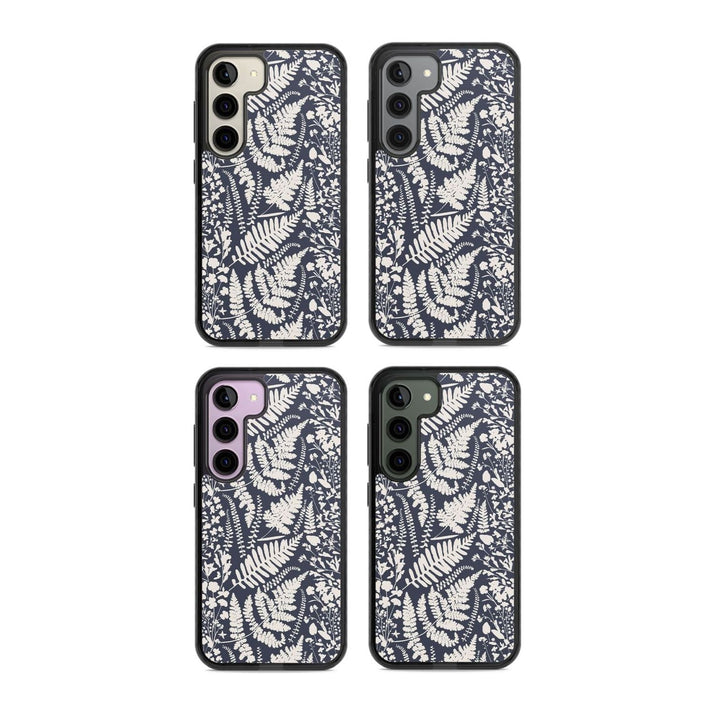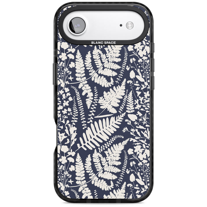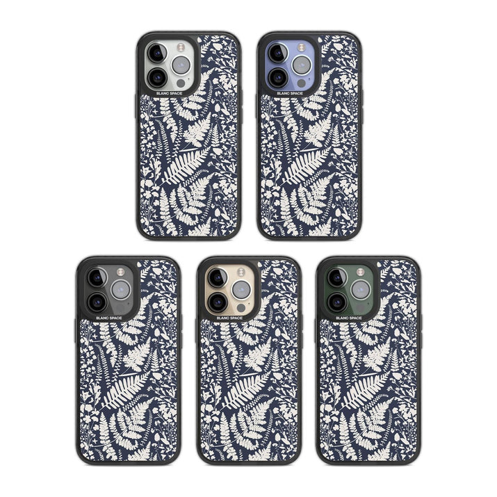 Fleurs sauvages et fougères sur fond bleu marine