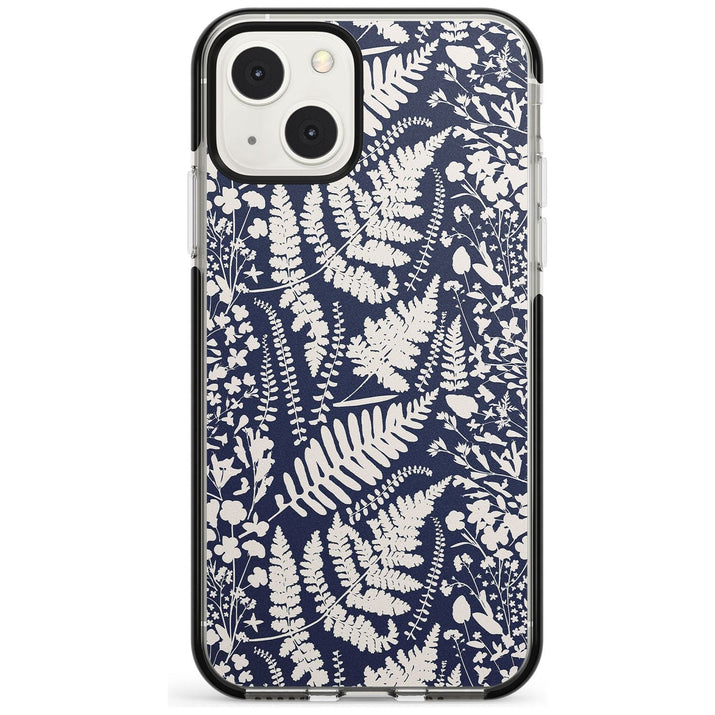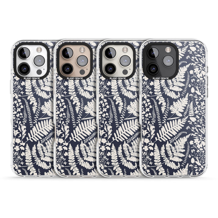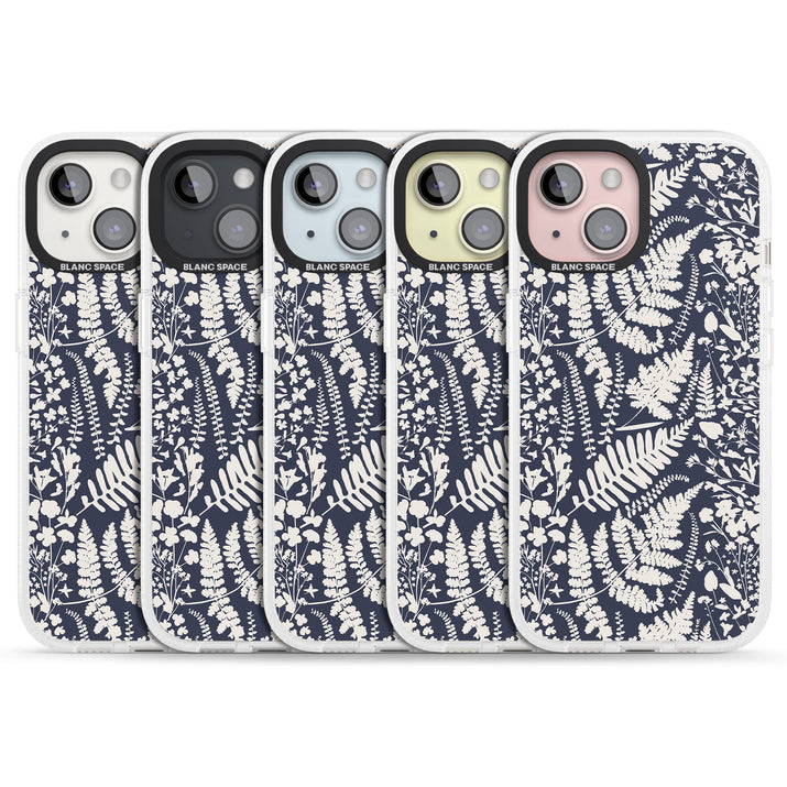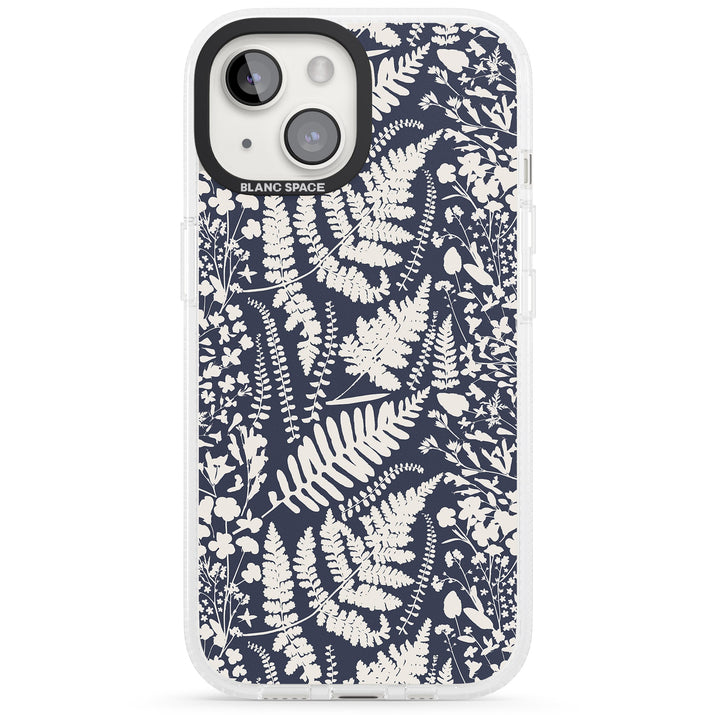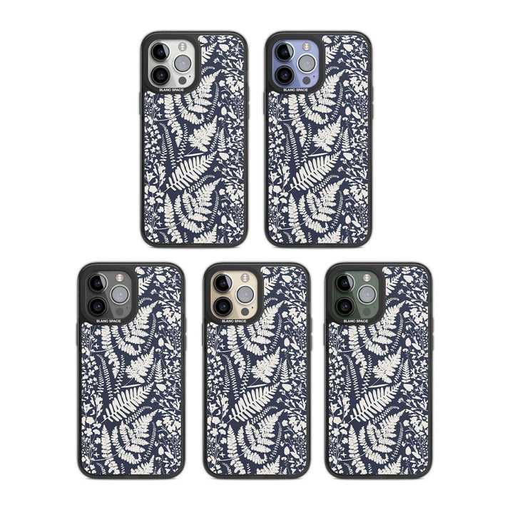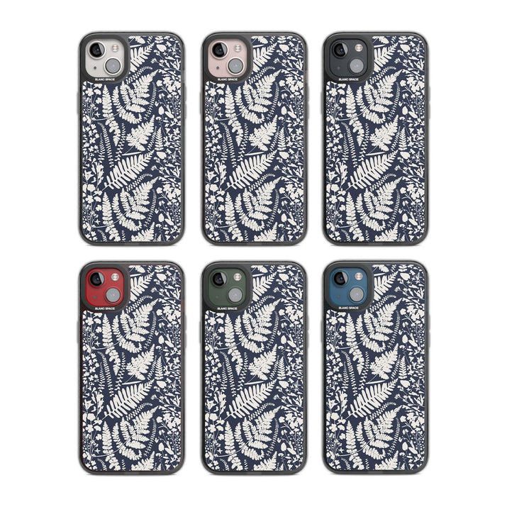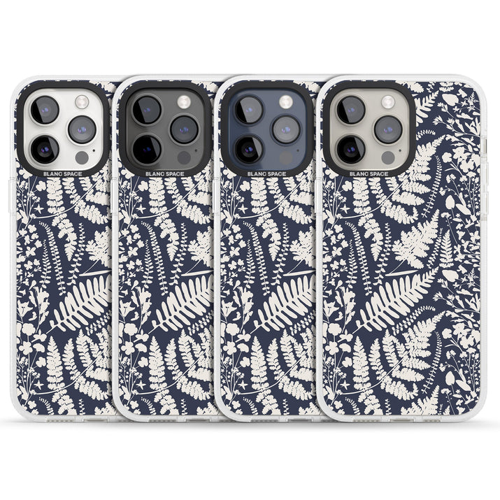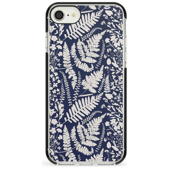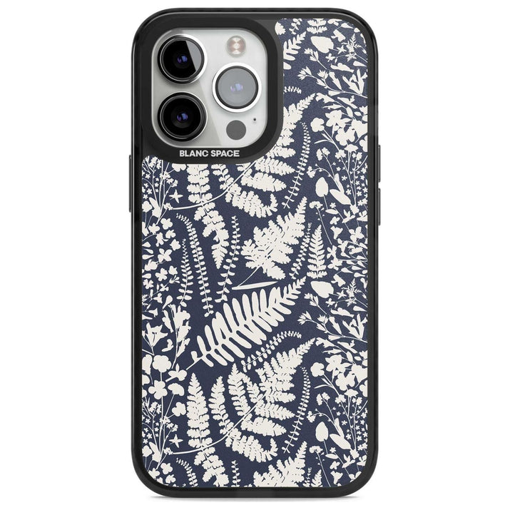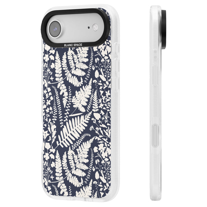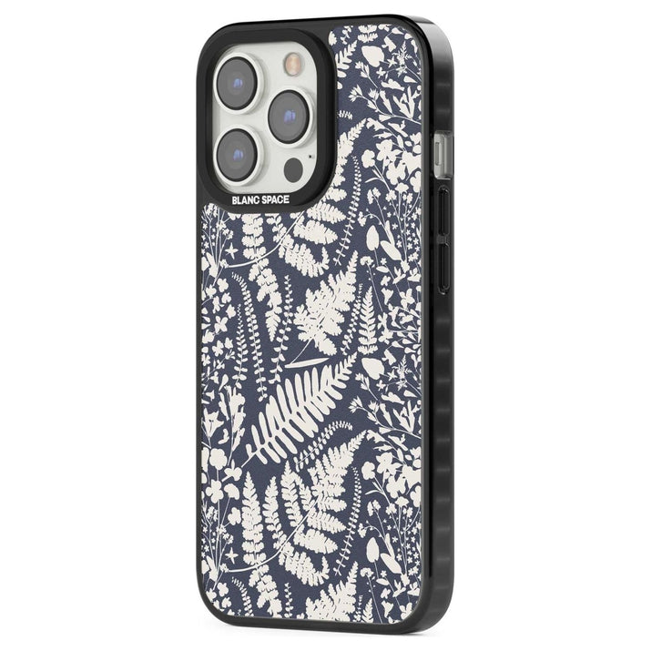 Fleurs sauvages et fougères sur fond bleu marine
