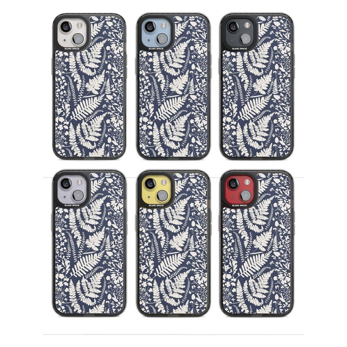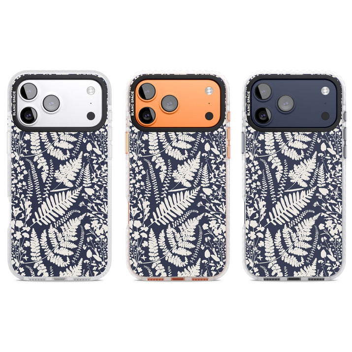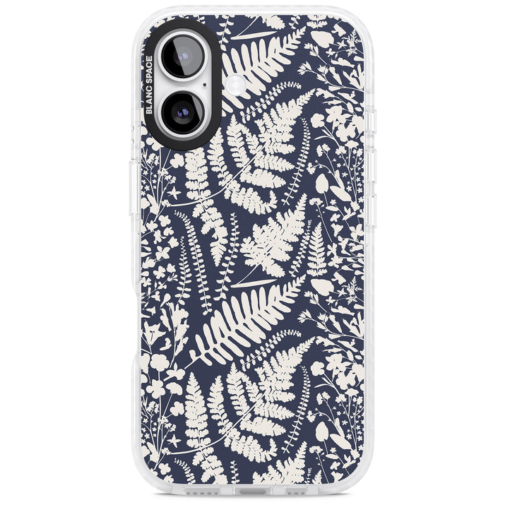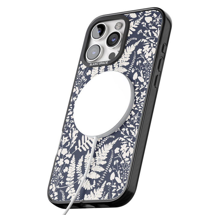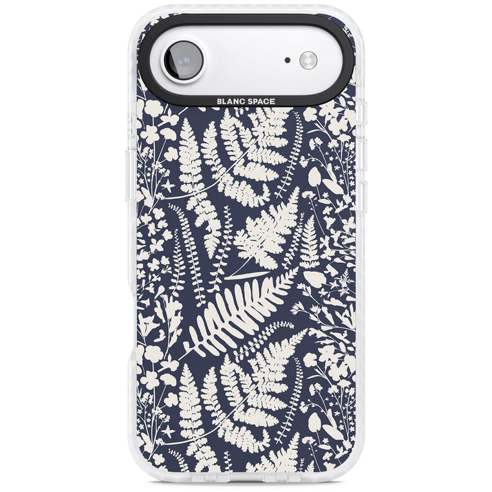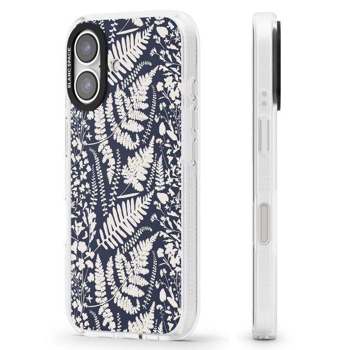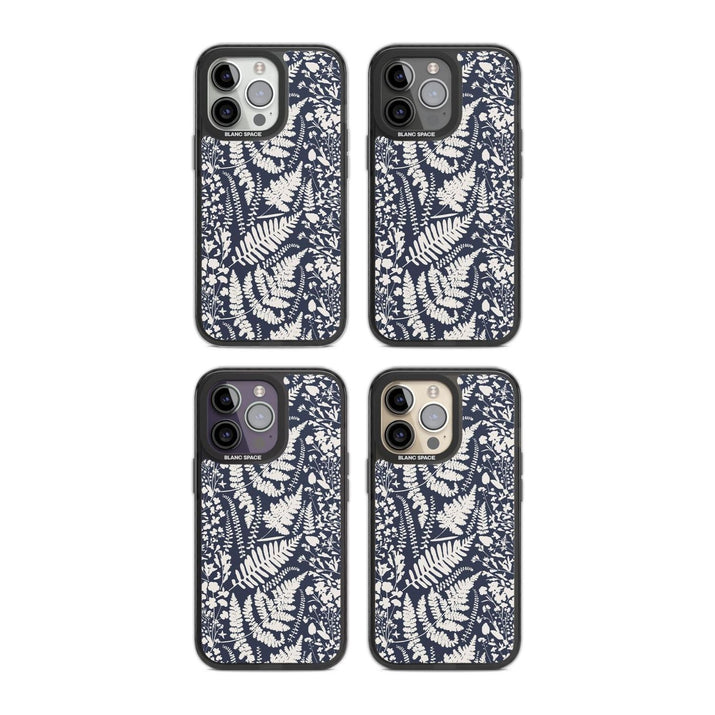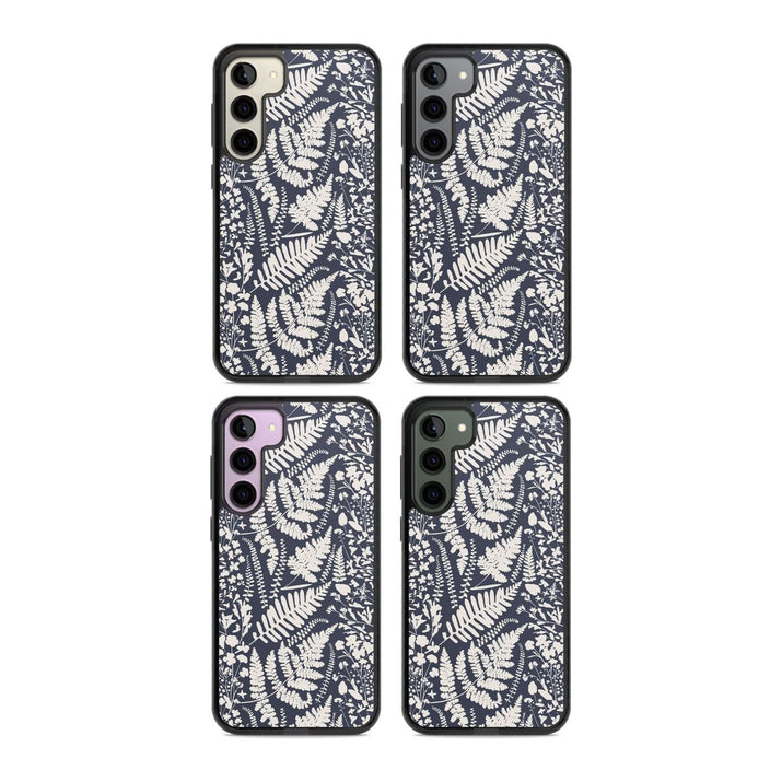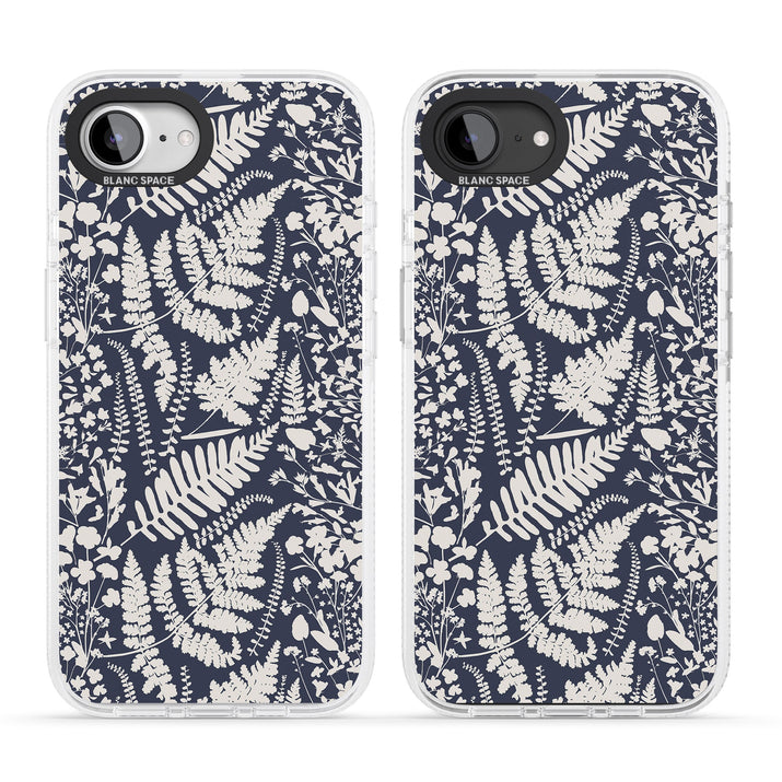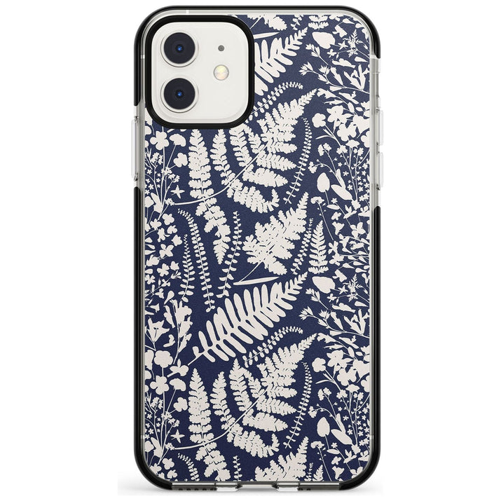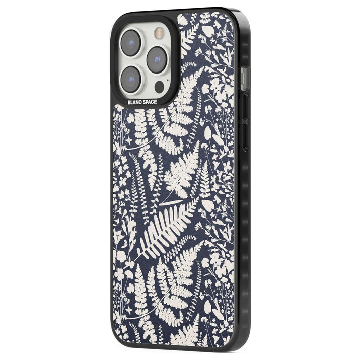 Fleurs sauvages et fougères sur fond bleu marine