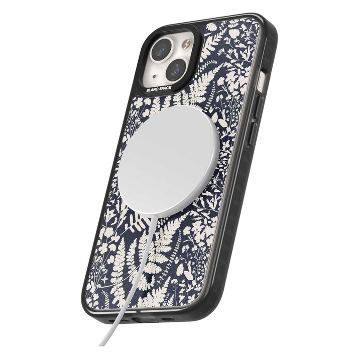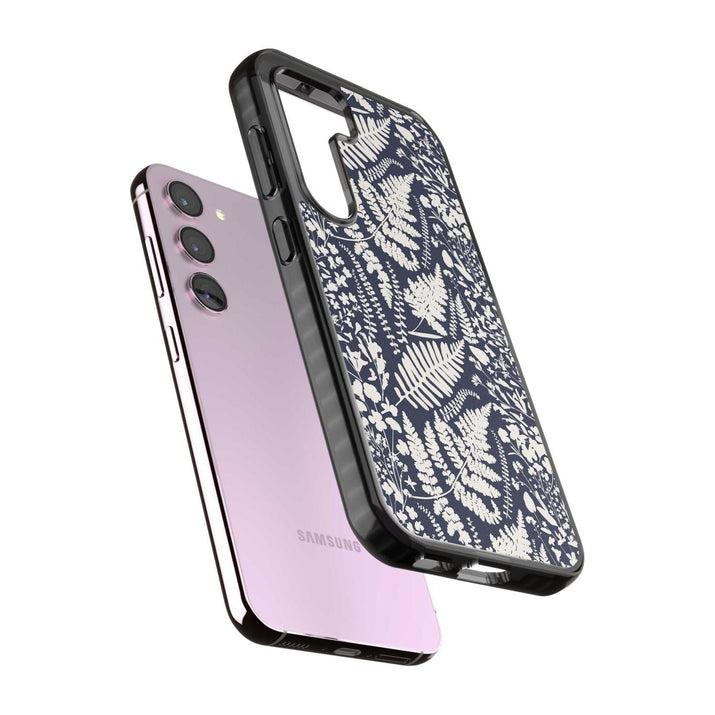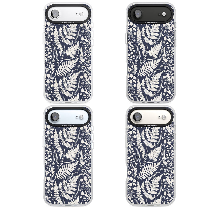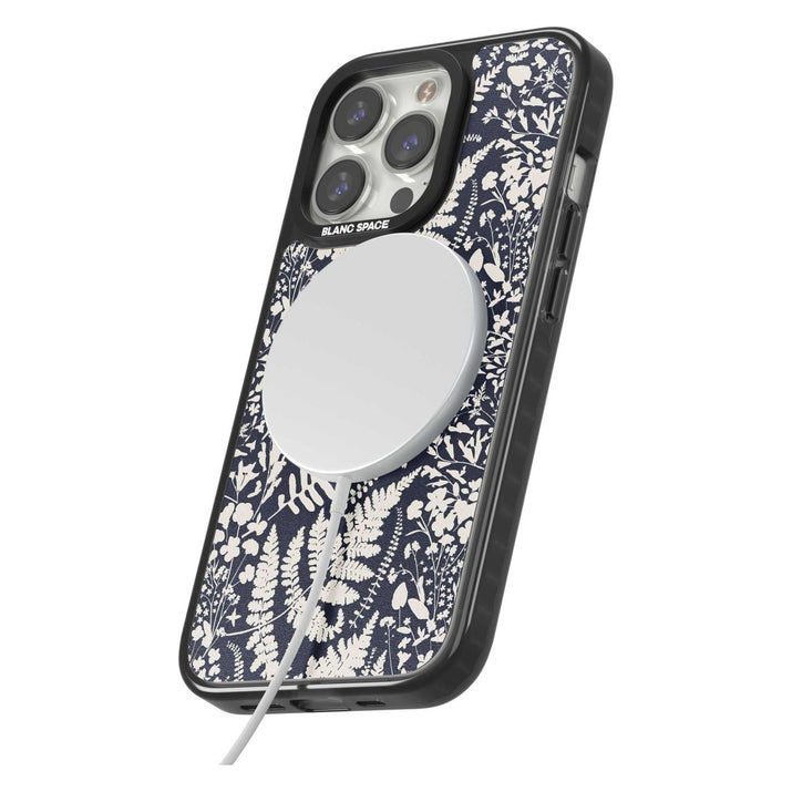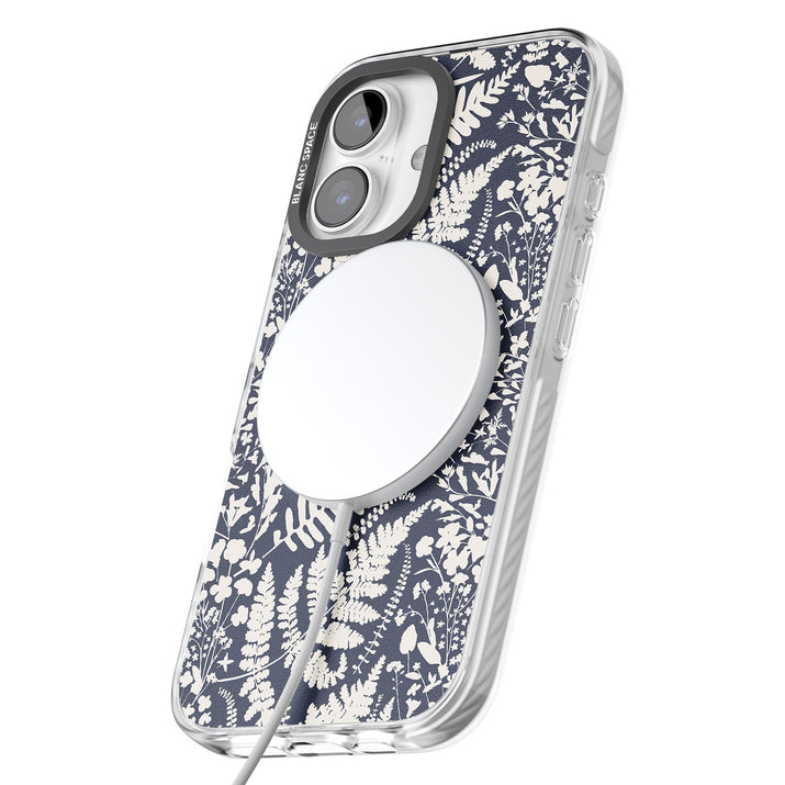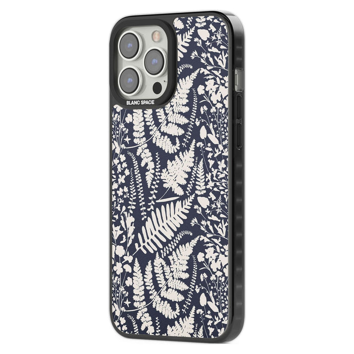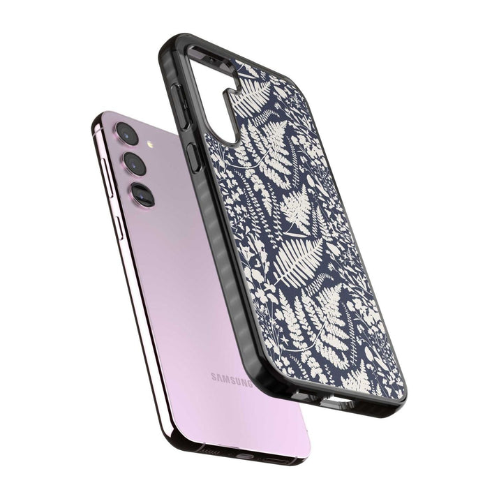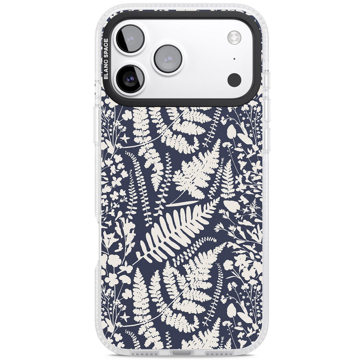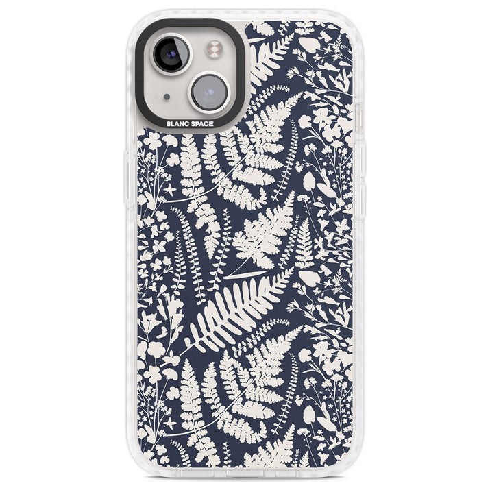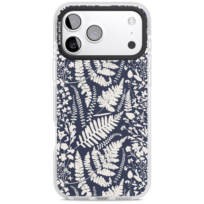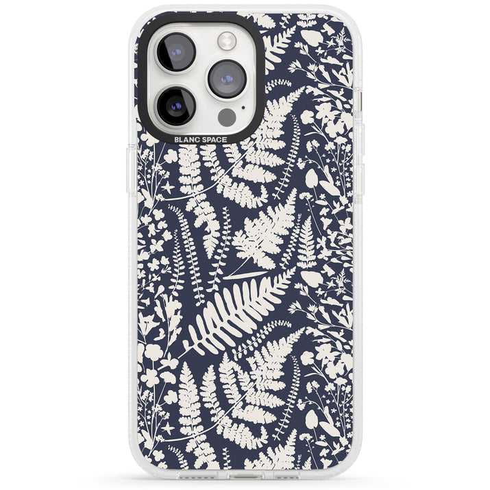 Fleurs sauvages et fougères sur fond bleu marine