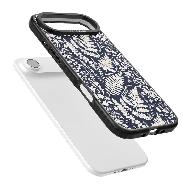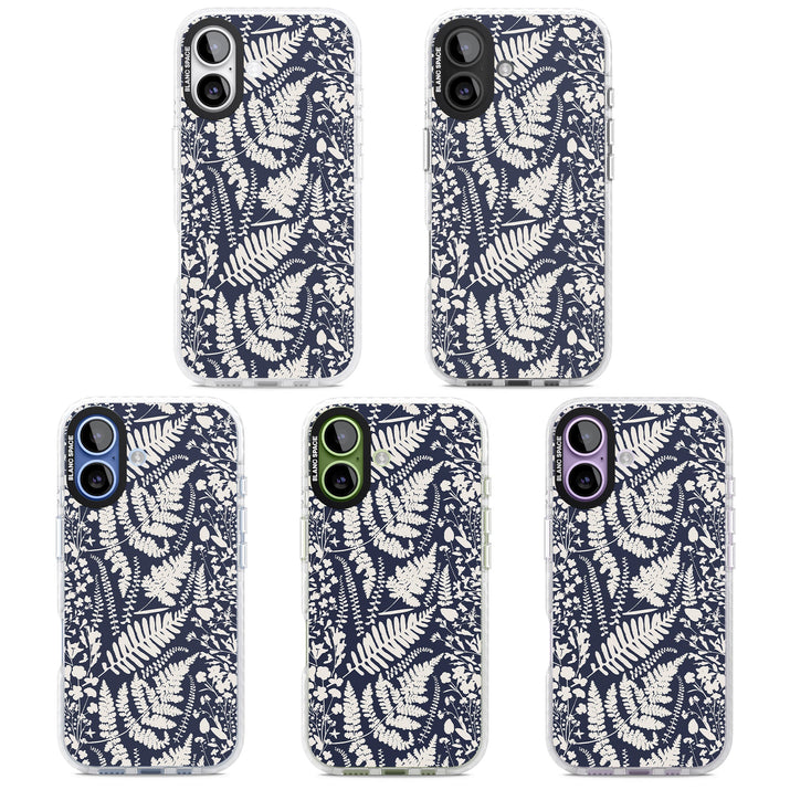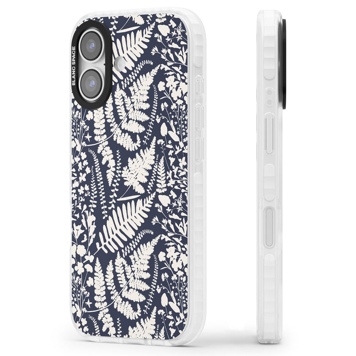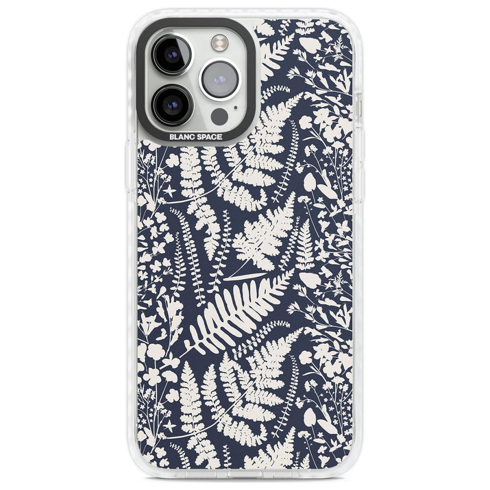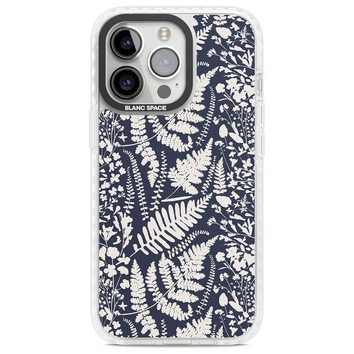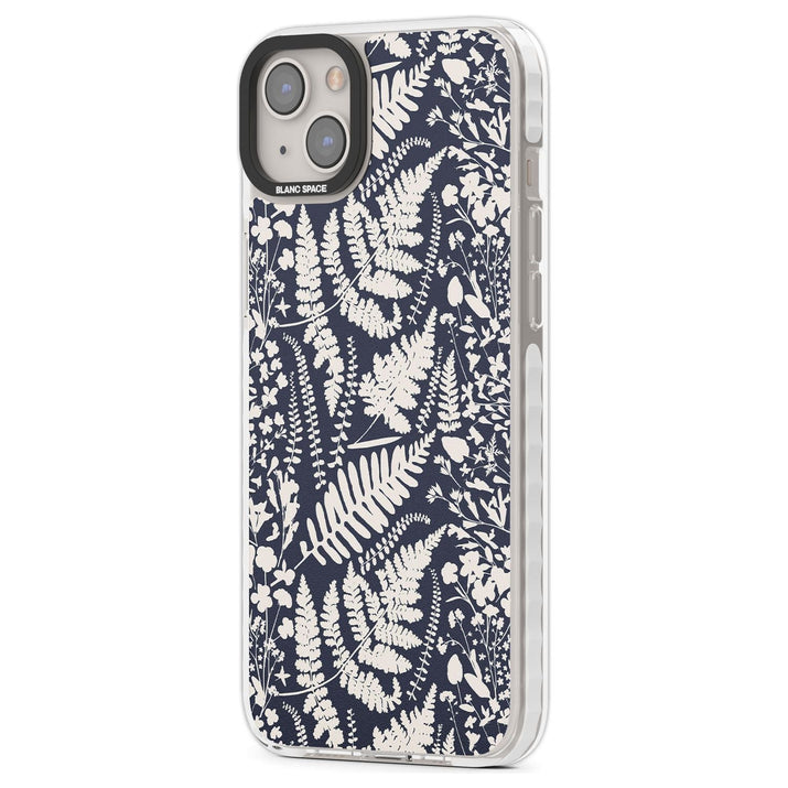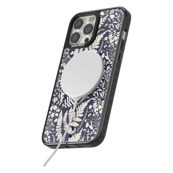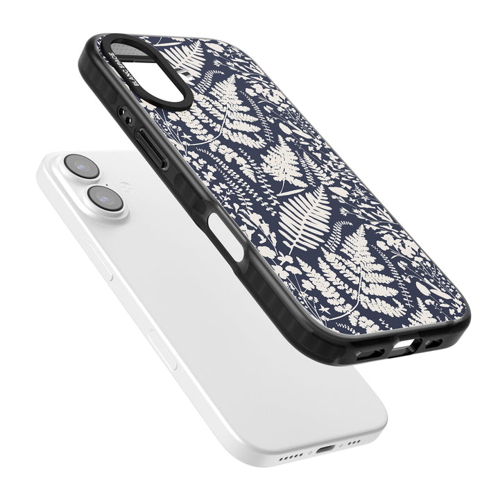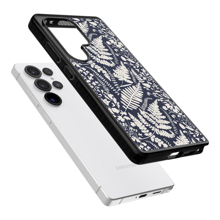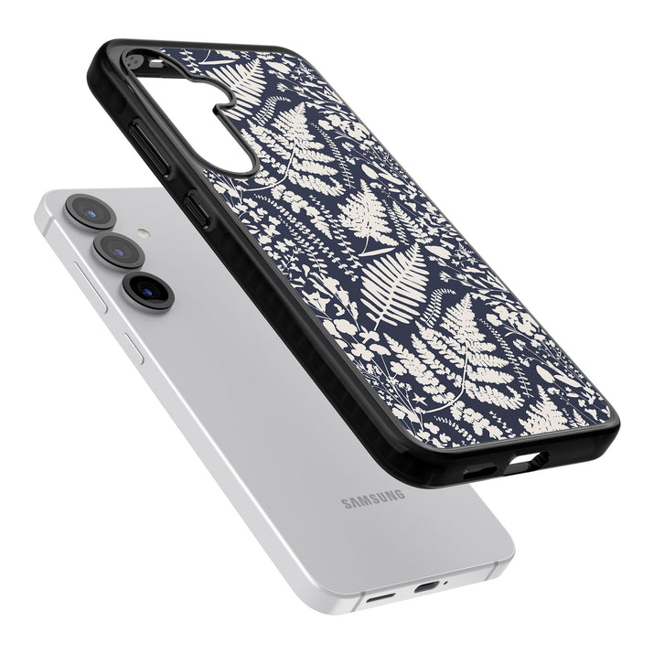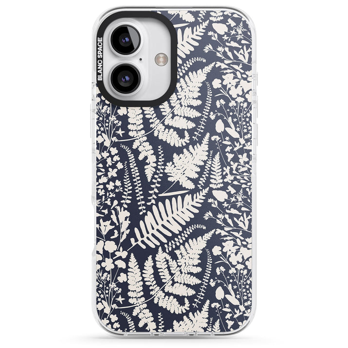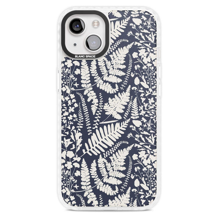 Fleurs sauvages et fougères sur fond bleu marine