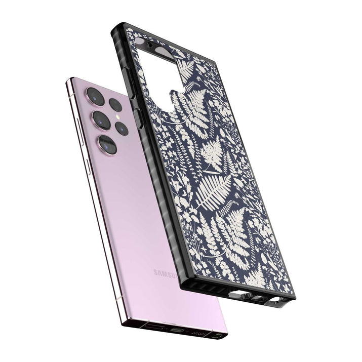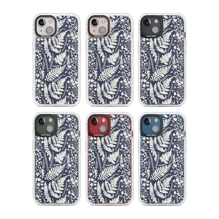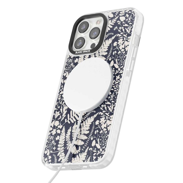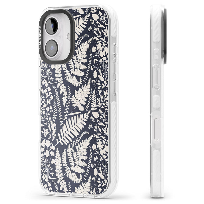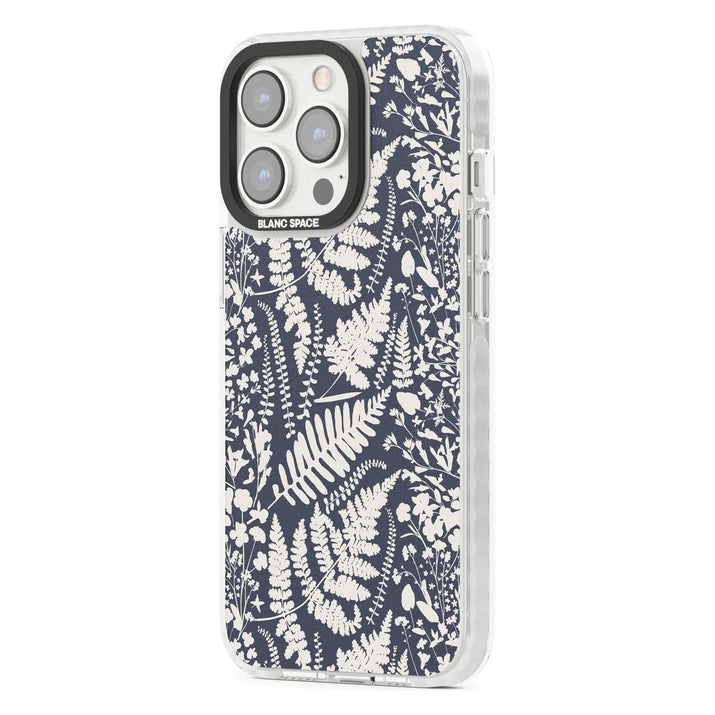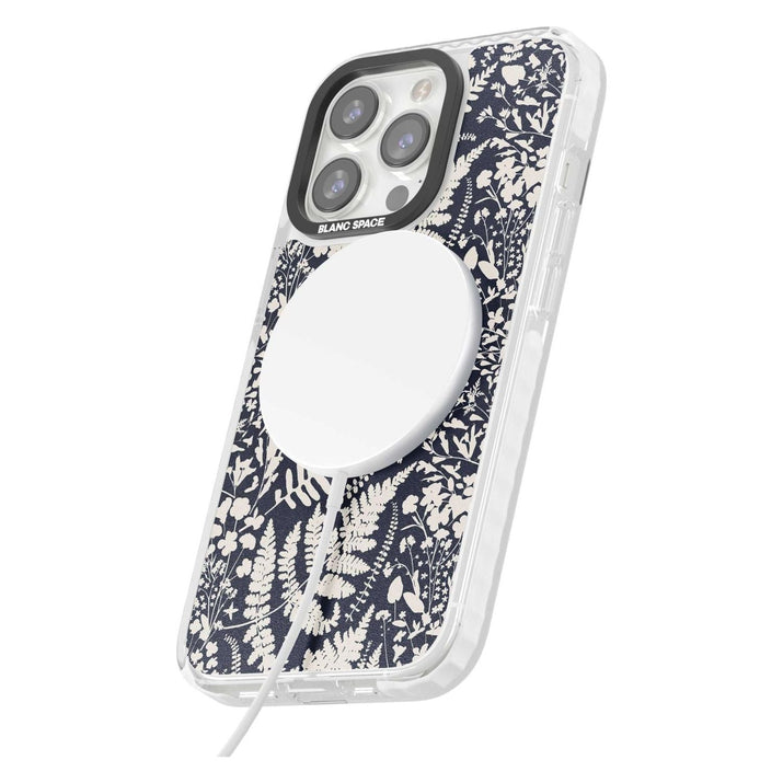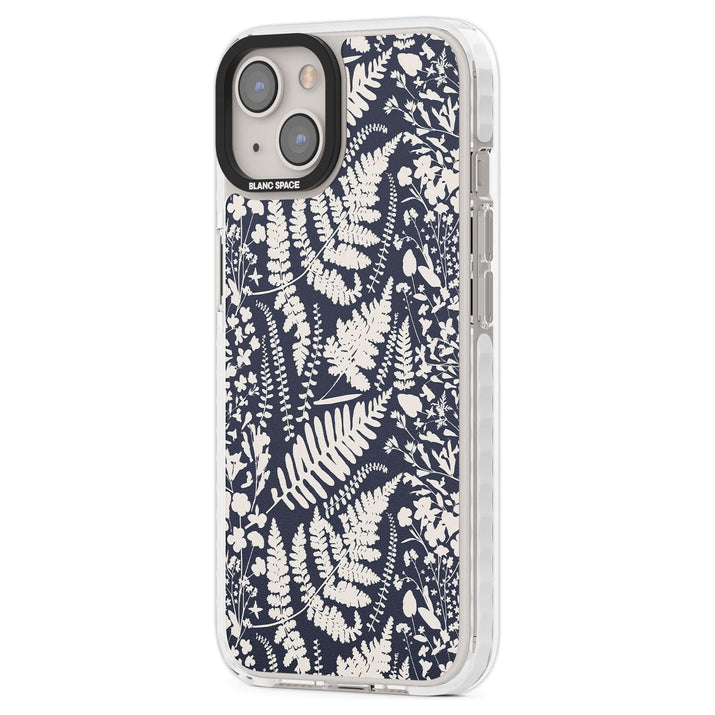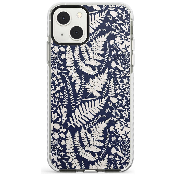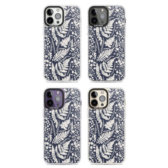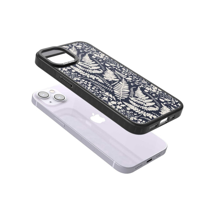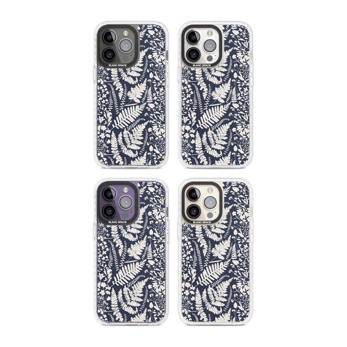 Fleurs sauvages et fougères sur fond bleu marine