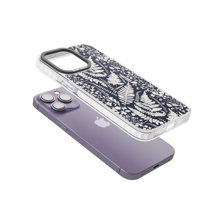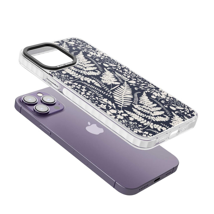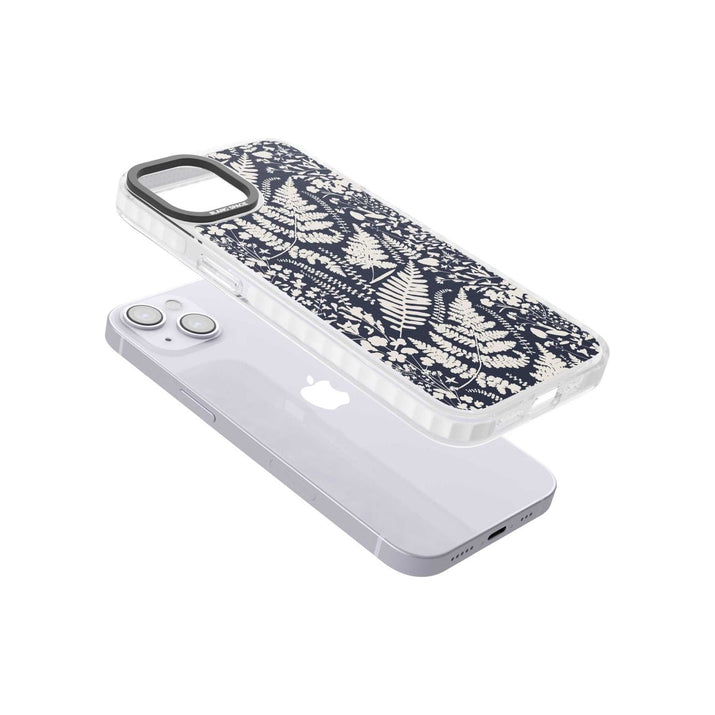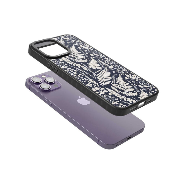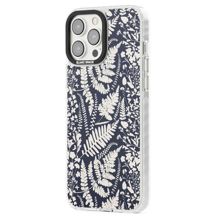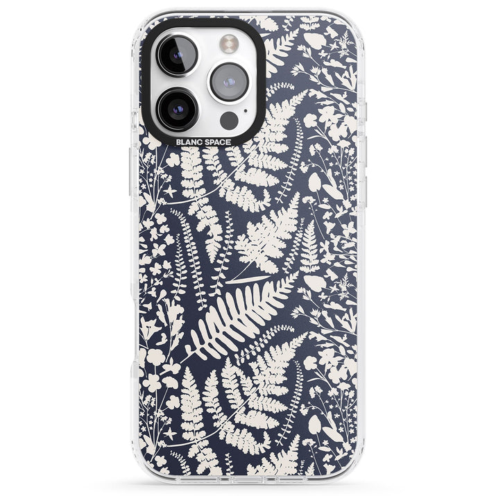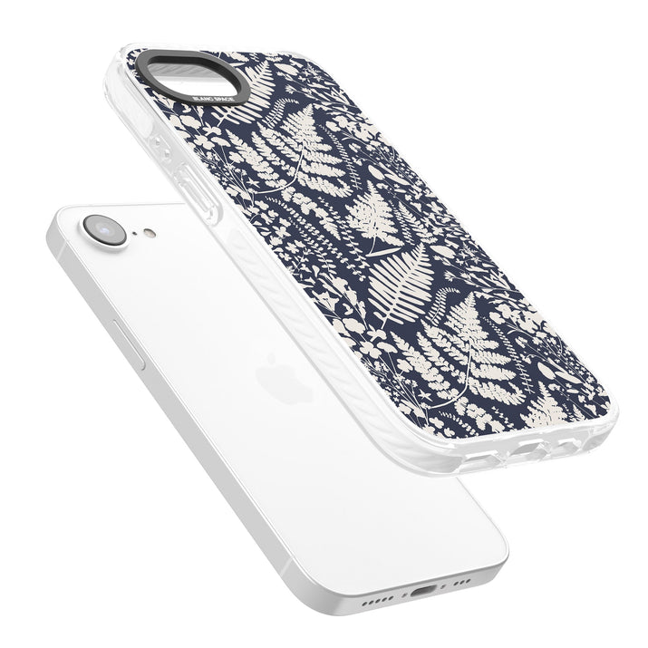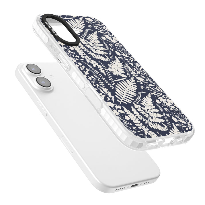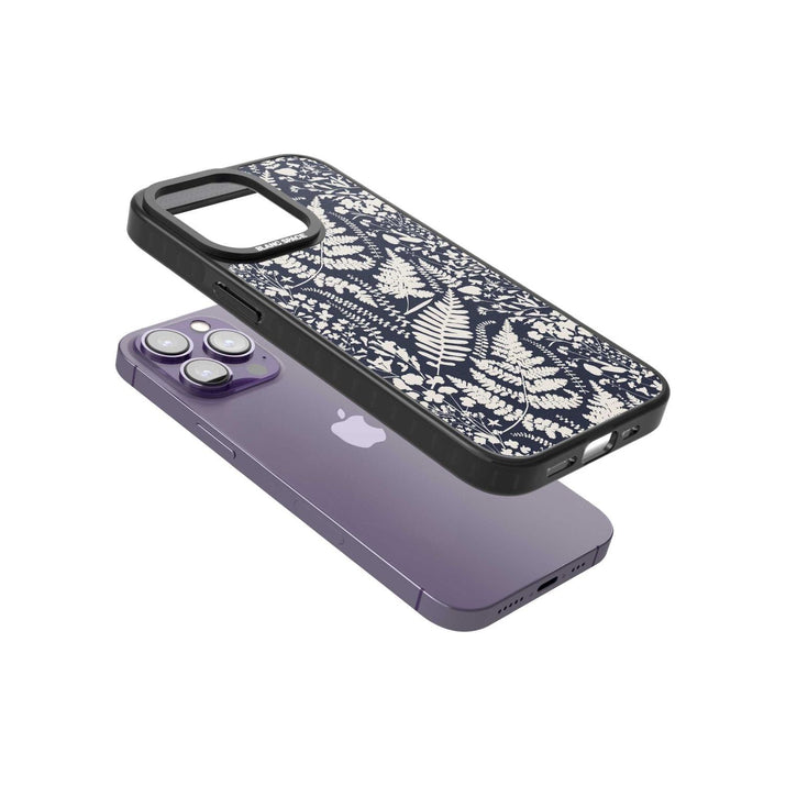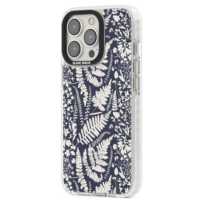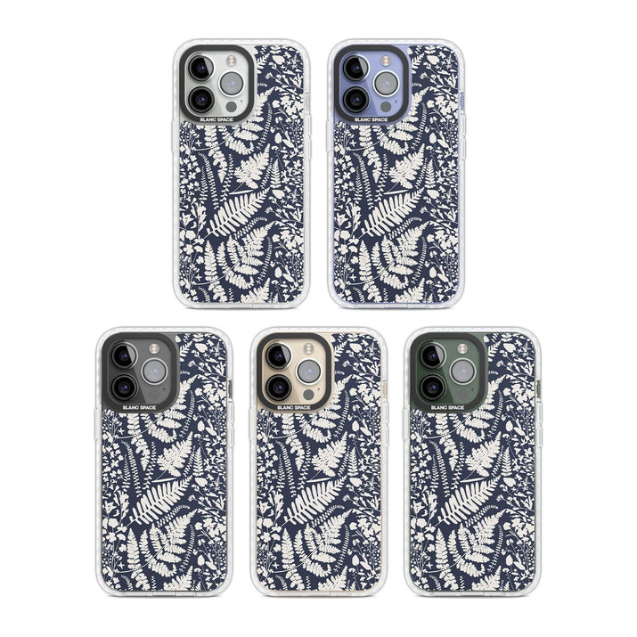 Fleurs sauvages et fougères sur fond bleu marine