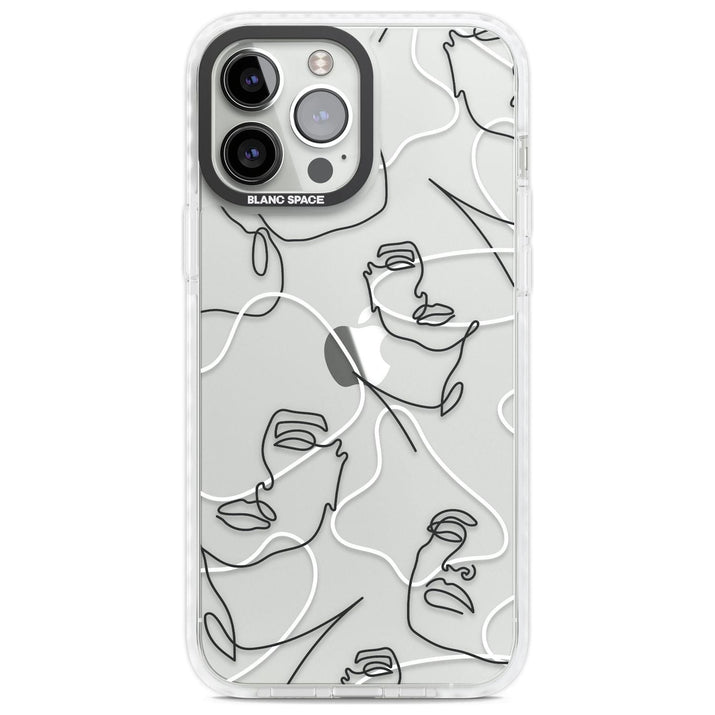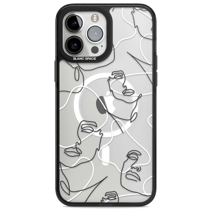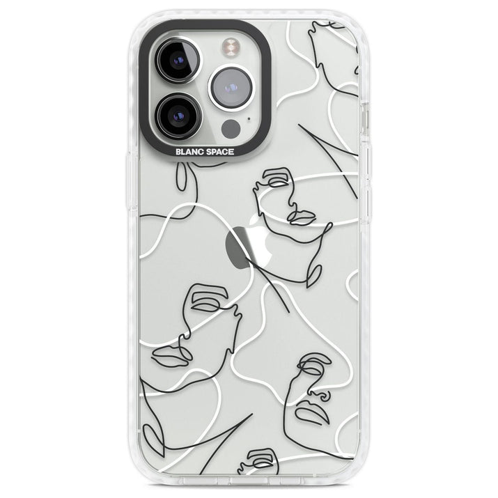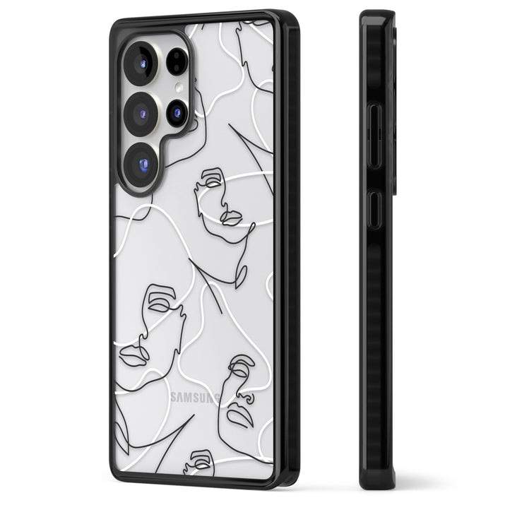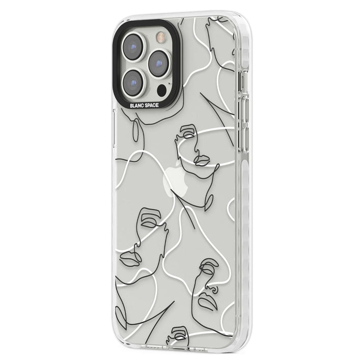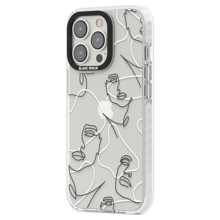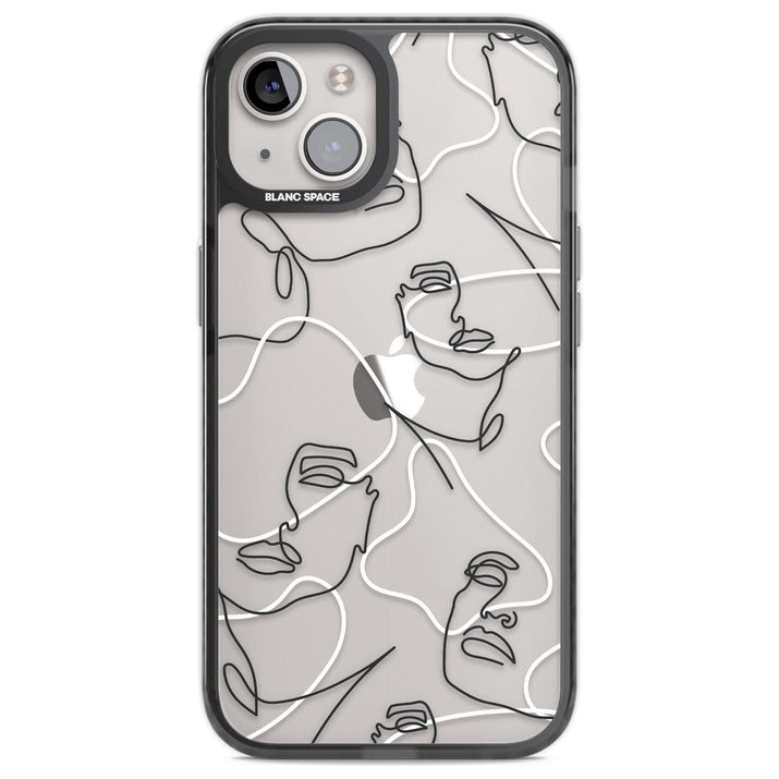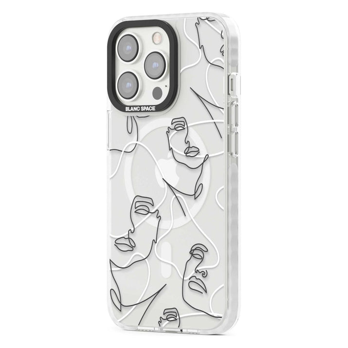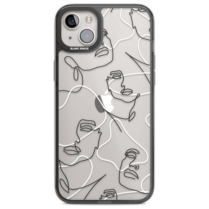 It features an abstract face line art design layered over soft blush, beige, and coral color blocks, combining artful aesthetics with practical functionality.