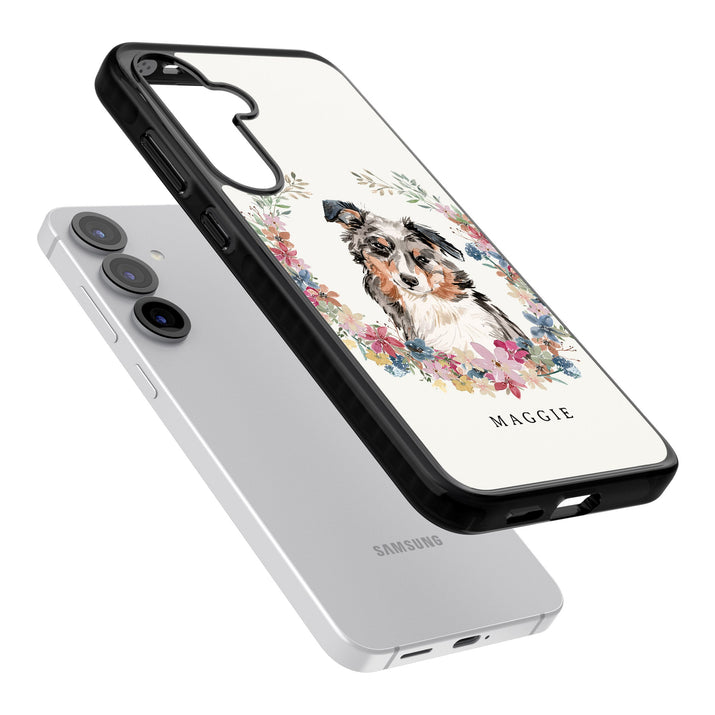 Personalised Australian Shepherd Floral Portrait