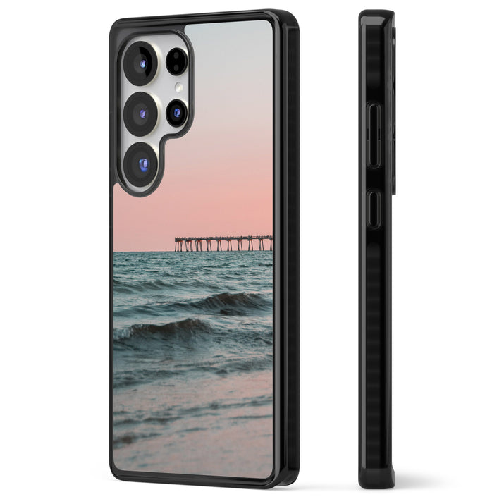 This phone case is designed to fit both iPhone and Samsung models, ensuring a wide range of compatibility for most users.