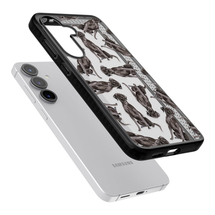 This phone case is designed to fit both iPhone and Samsung models, ensuring a wide range of compatibility for most users.