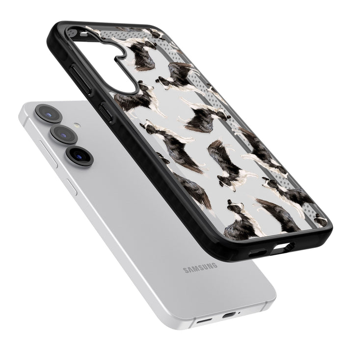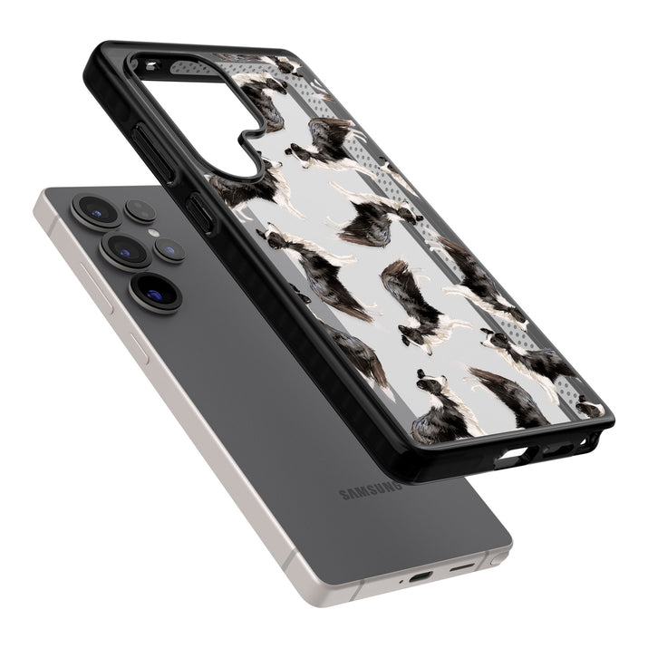 This phone case is designed to fit both iPhone and Samsung models, ensuring a wide range of compatibility for most users.