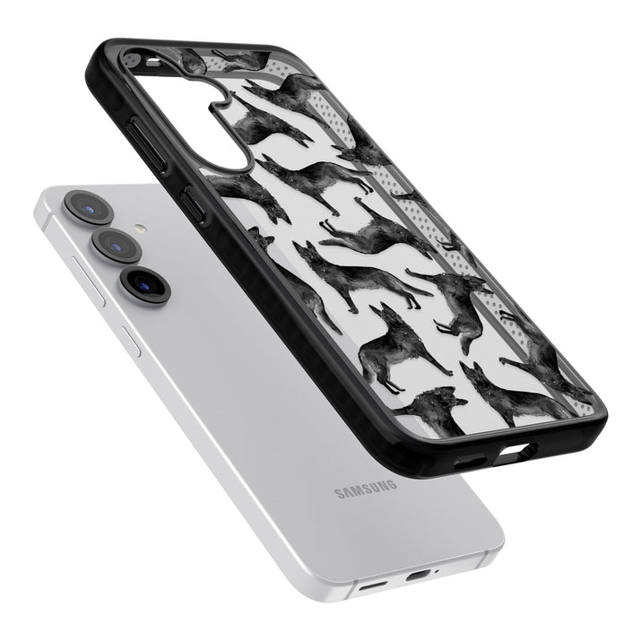 This phone case is designed to fit both iPhone and Samsung models, ensuring a wide range of compatibility for most users.