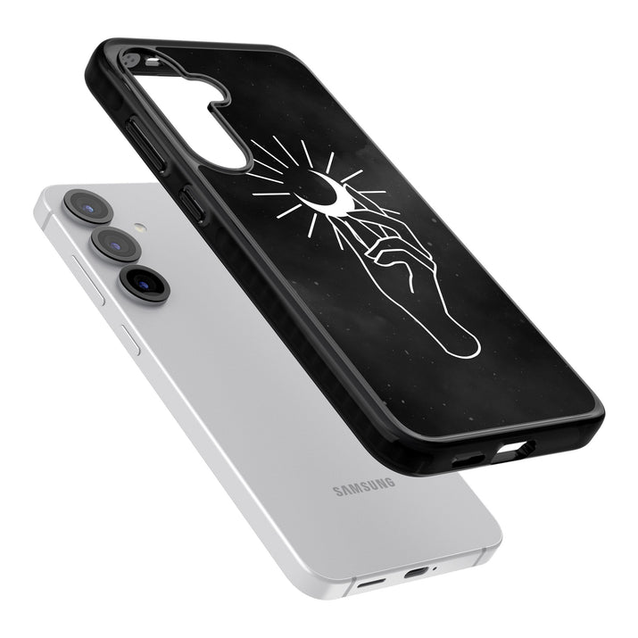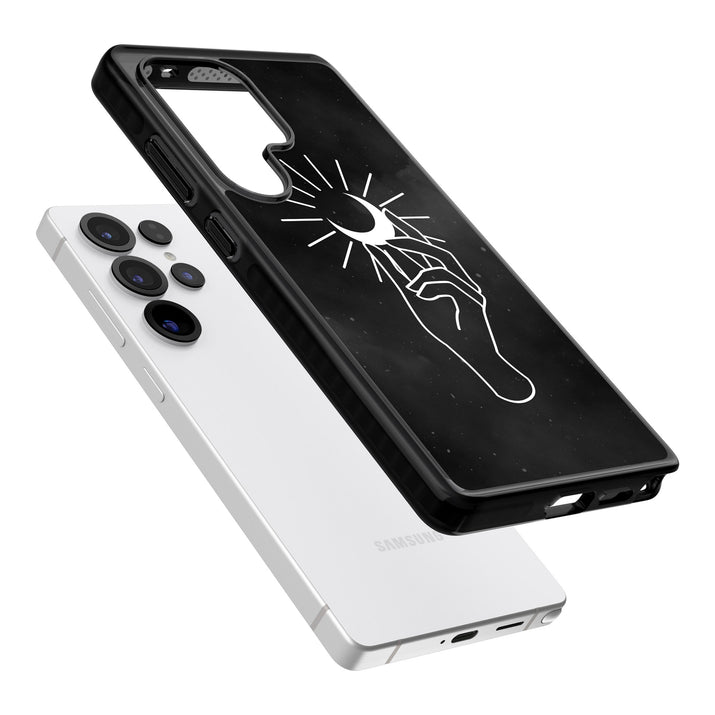 This phone case is designed to fit both iPhone and Samsung models, ensuring a wide range of compatibility for most users.