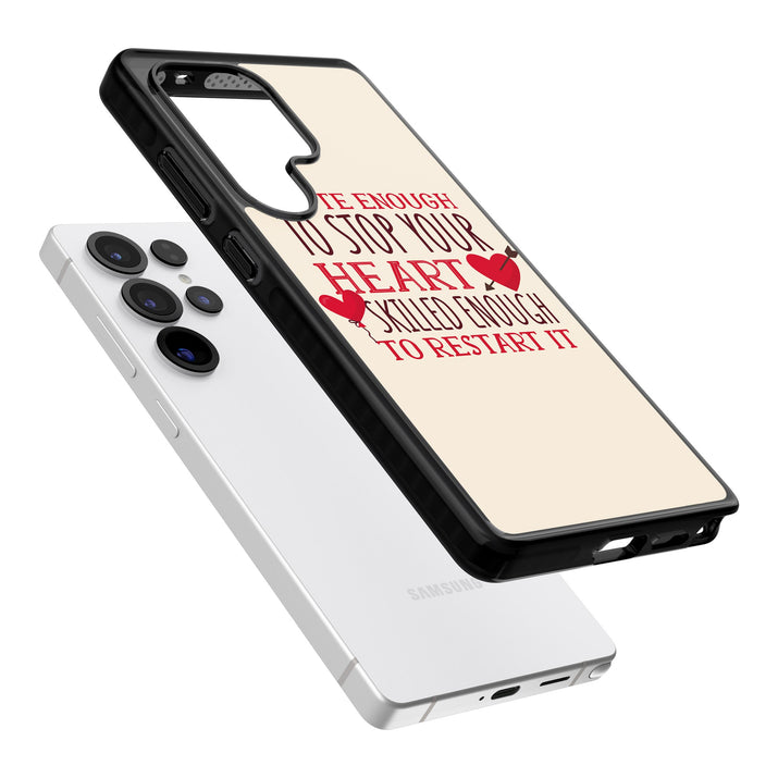 This phone case is designed to fit both iPhone and Samsung models, ensuring a wide range of compatibility for most users.