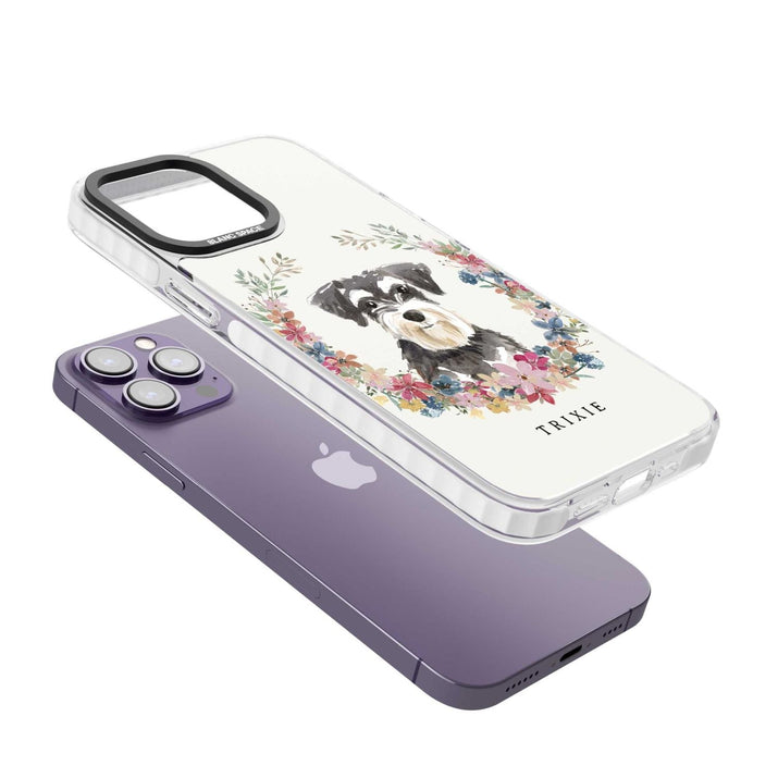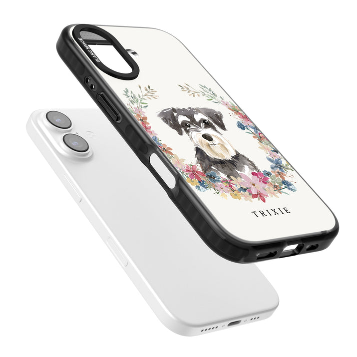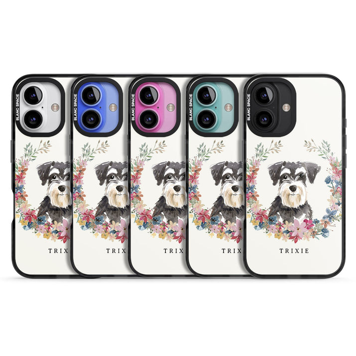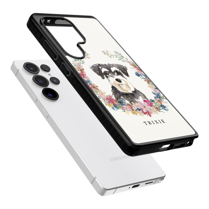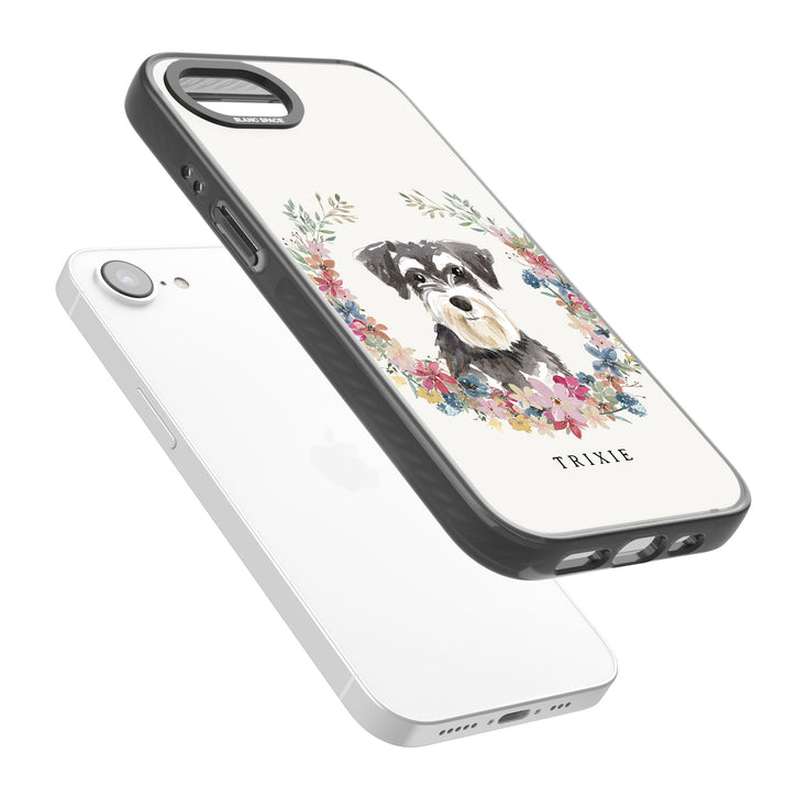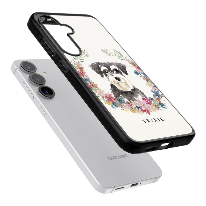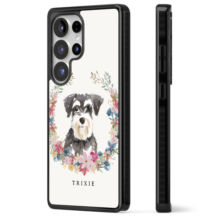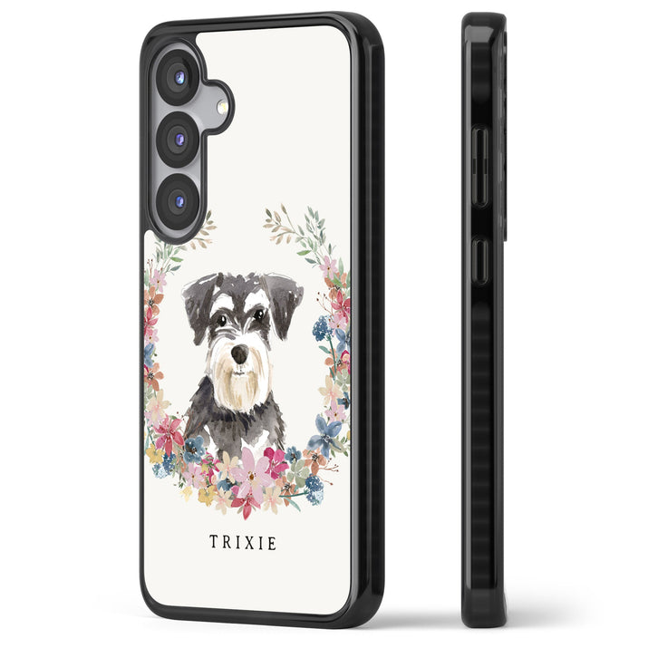 Personalised Watercolor Schnauzer Floral Portrait