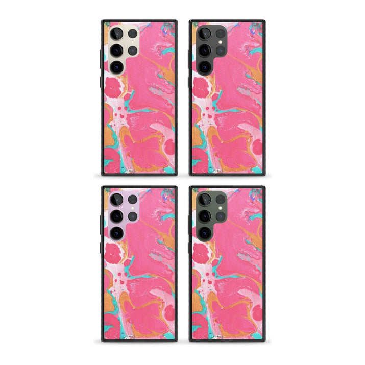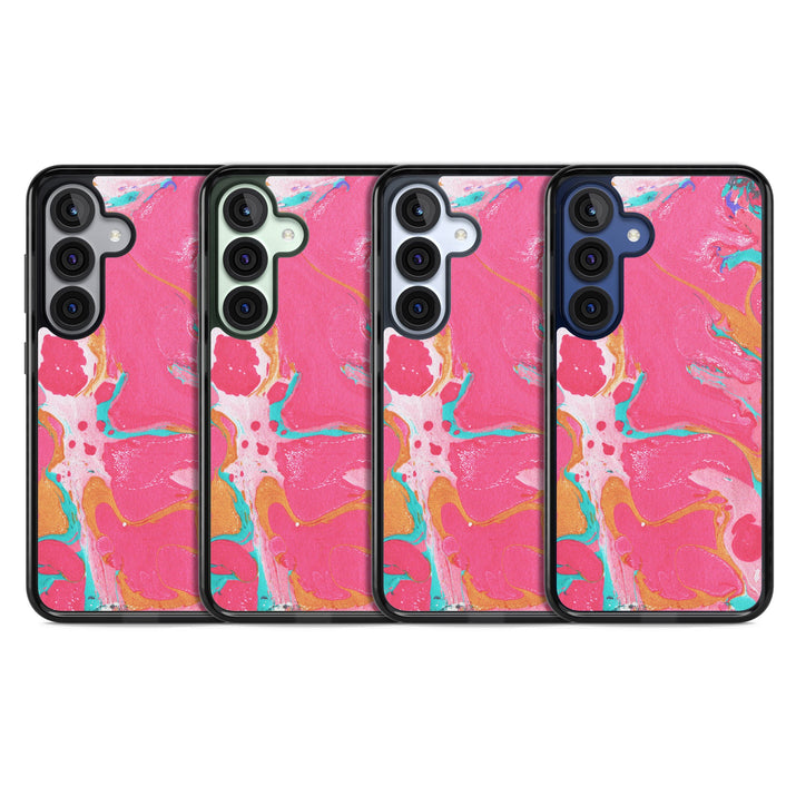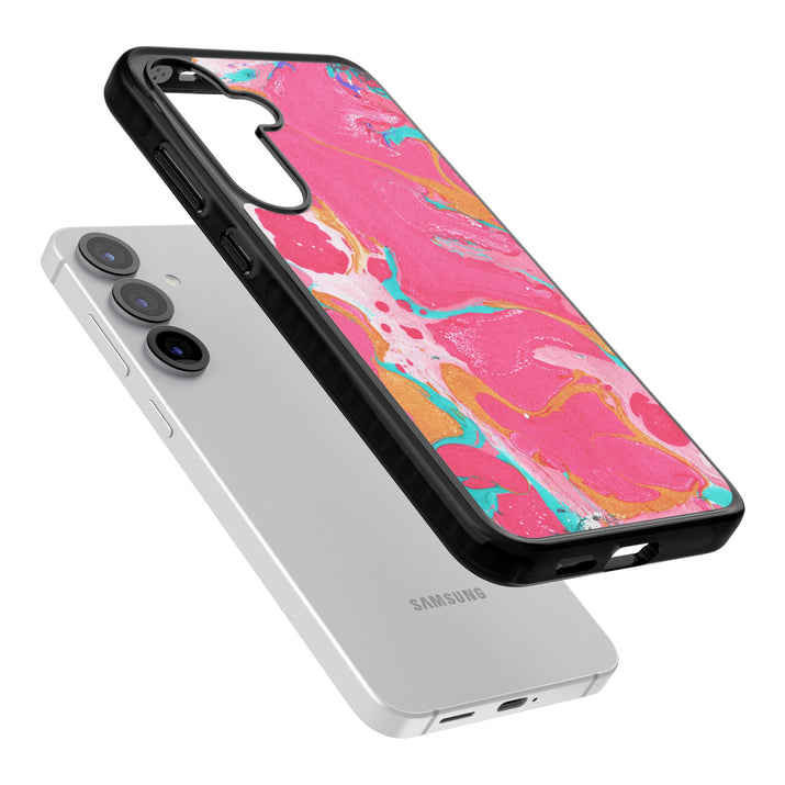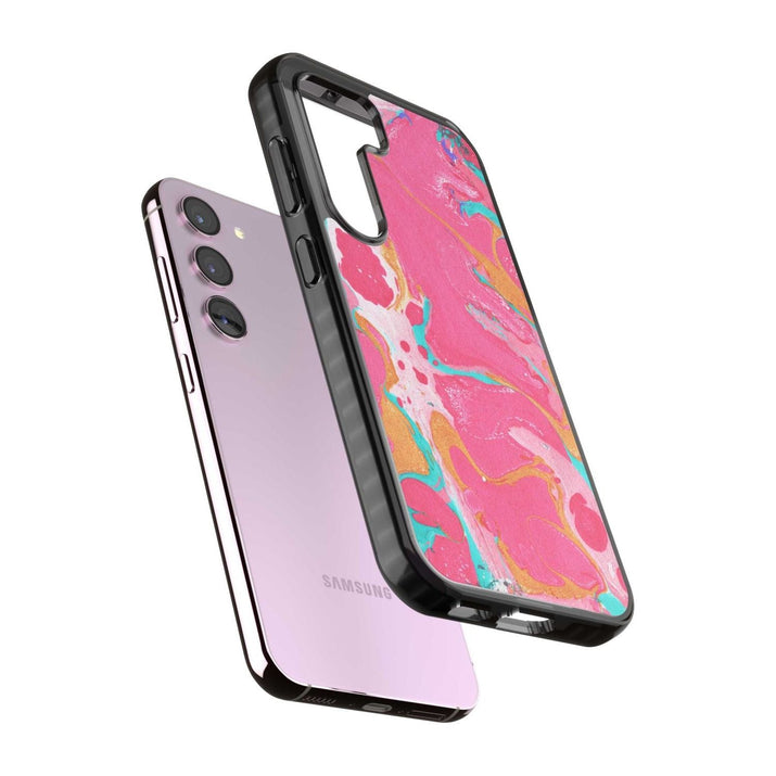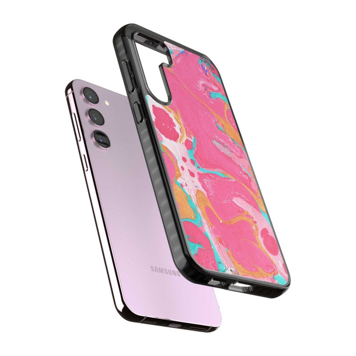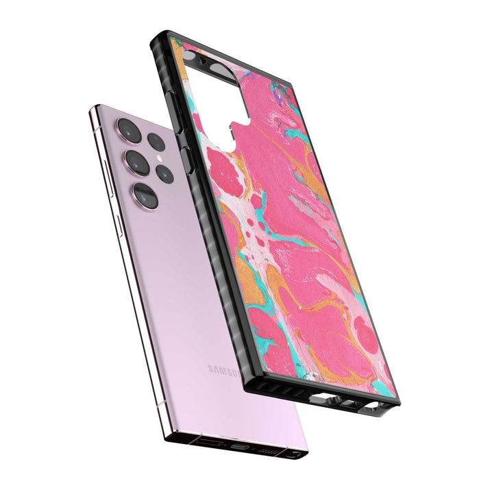 This phone case is designed to fit both iPhone and Samsung models, ensuring a wide range of compatibility for most users.