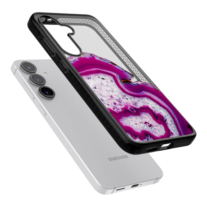 This phone case is designed to fit both iPhone and Samsung models, ensuring a wide range of compatibility for most users.