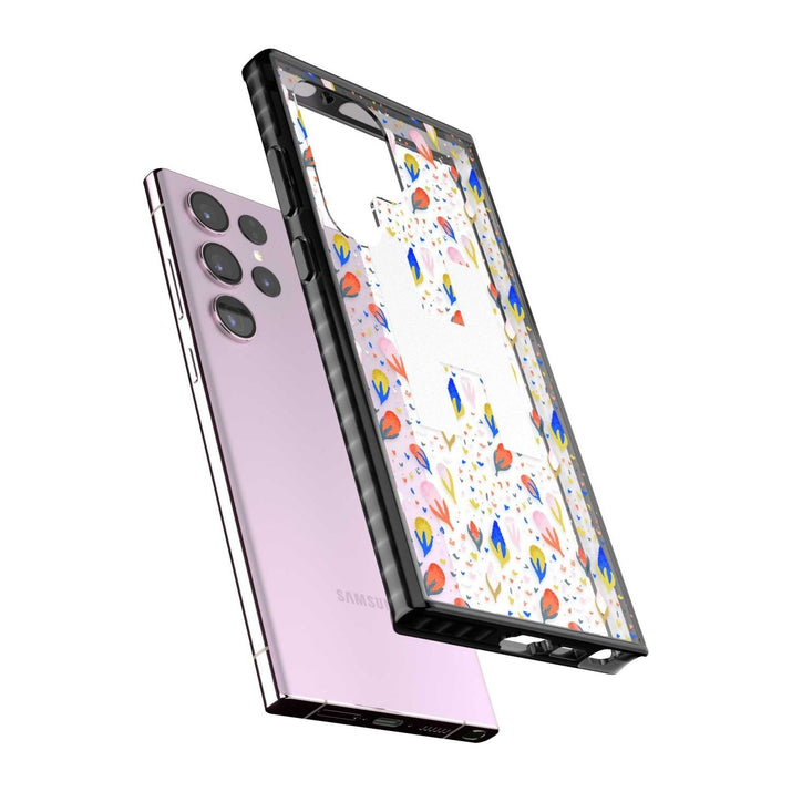 This phone case is designed to fit both iPhone and Samsung models, ensuring a wide range of compatibility for most users.