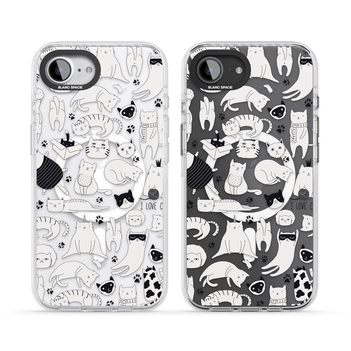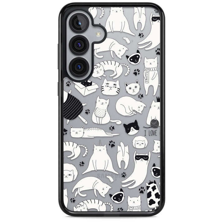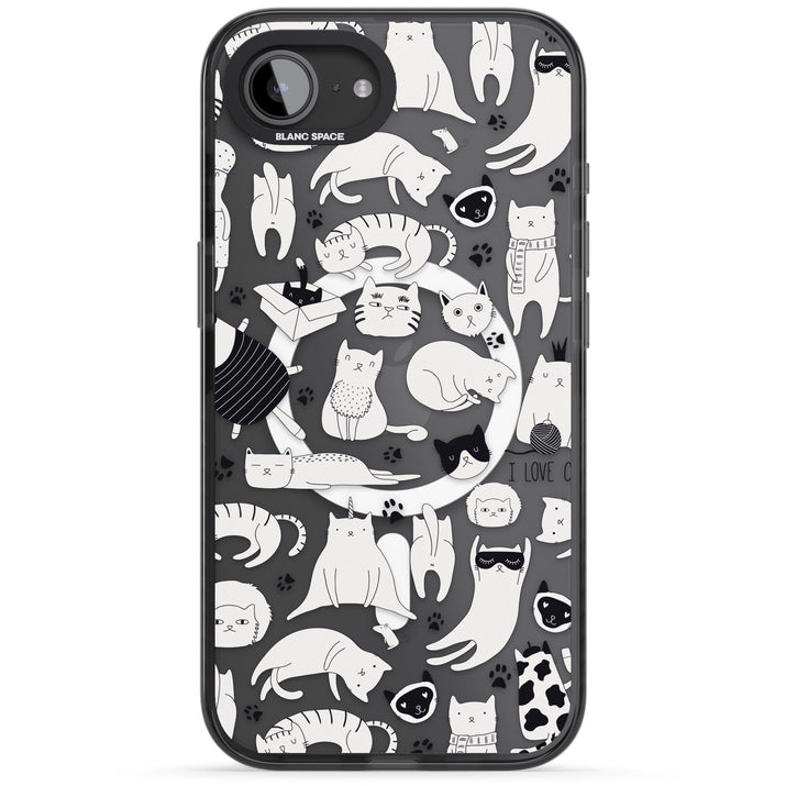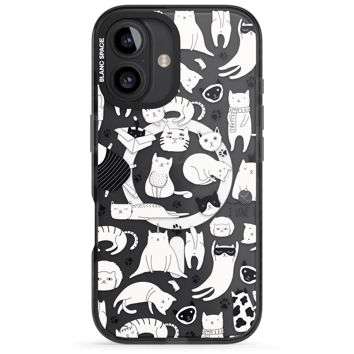 Cartoon Cat Collage Black & White