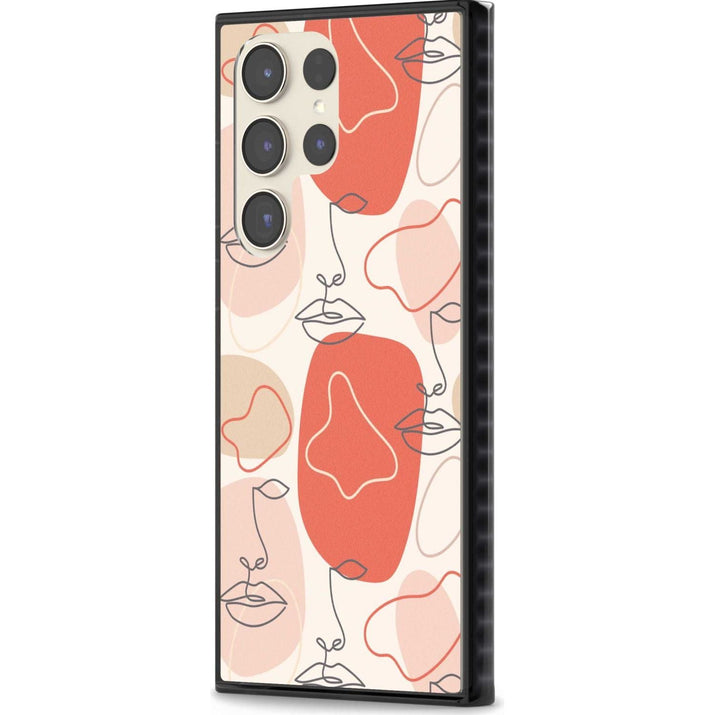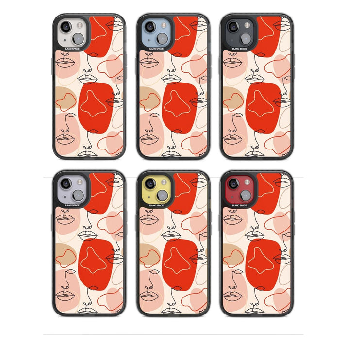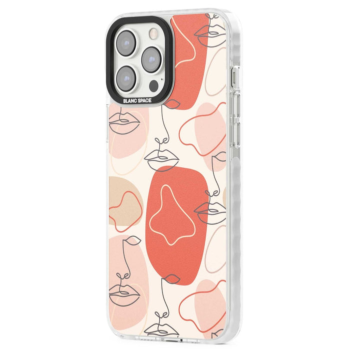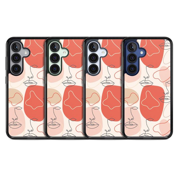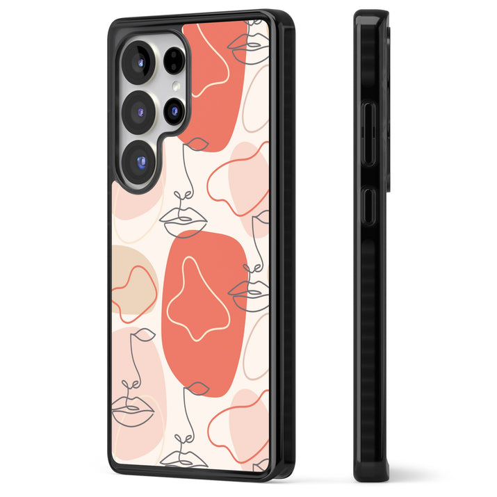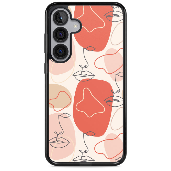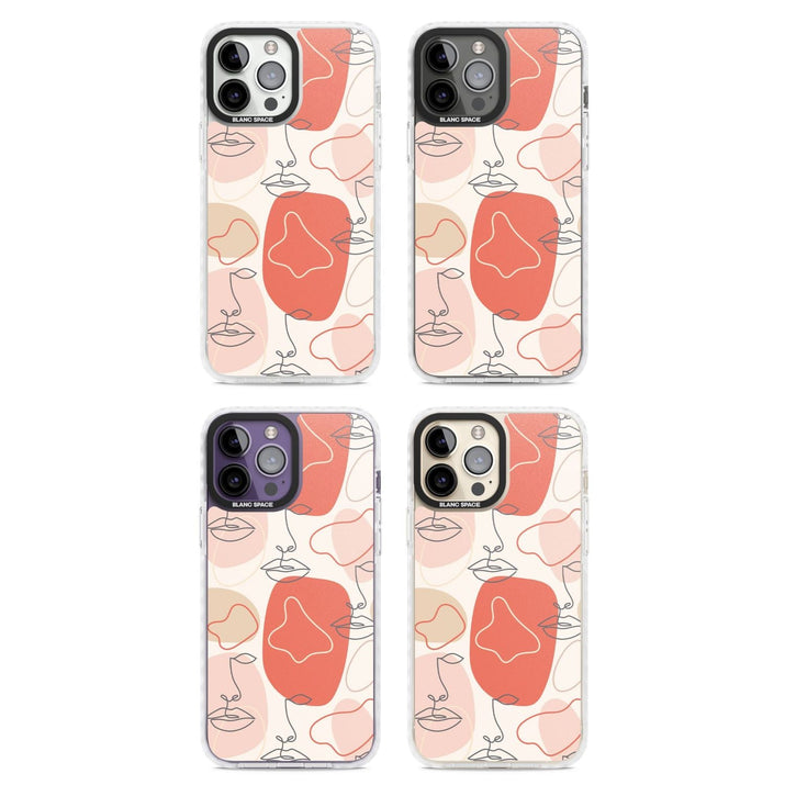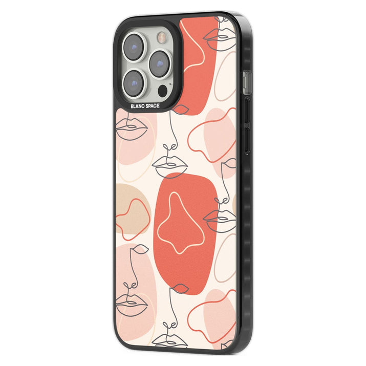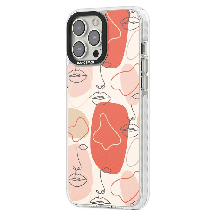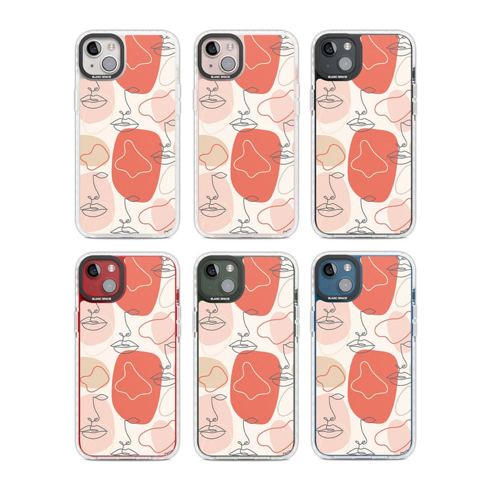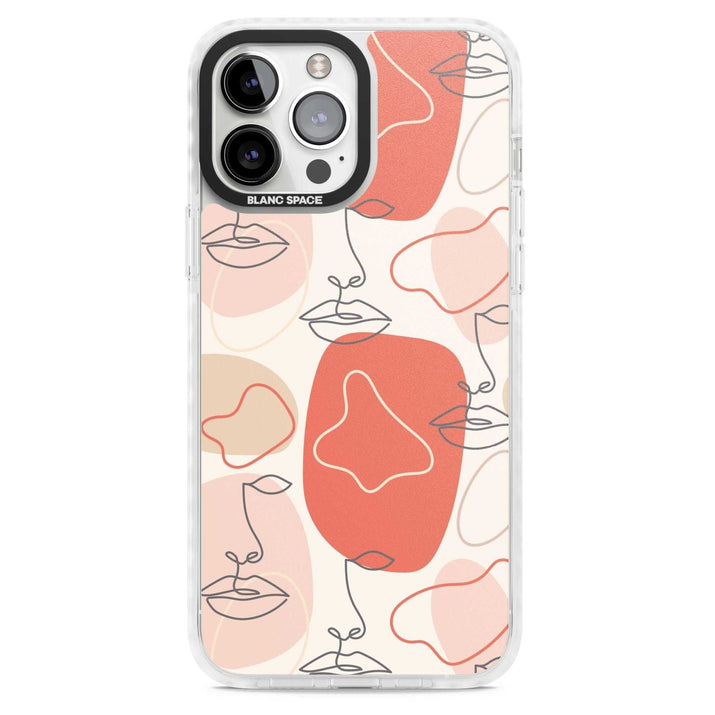 Den har en abstrakt ansiktslinjekonstdesign lager över mjuka rouge-, beige- och korallfärgblock, som kombinerar konstnärlig estetik med praktisk funktionalitet.